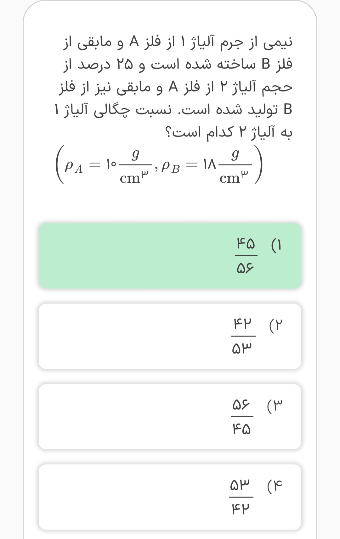 عذر می‌خوام من متوجه نمیشم اطلاعات سوال چی به چیه، منظورم اینه از کجا بفهمم یک سوم چگالی جسم A هشت یا دو سوم چگالی جسم B. ممنون میشم یه توضیح کوچیکی بدین