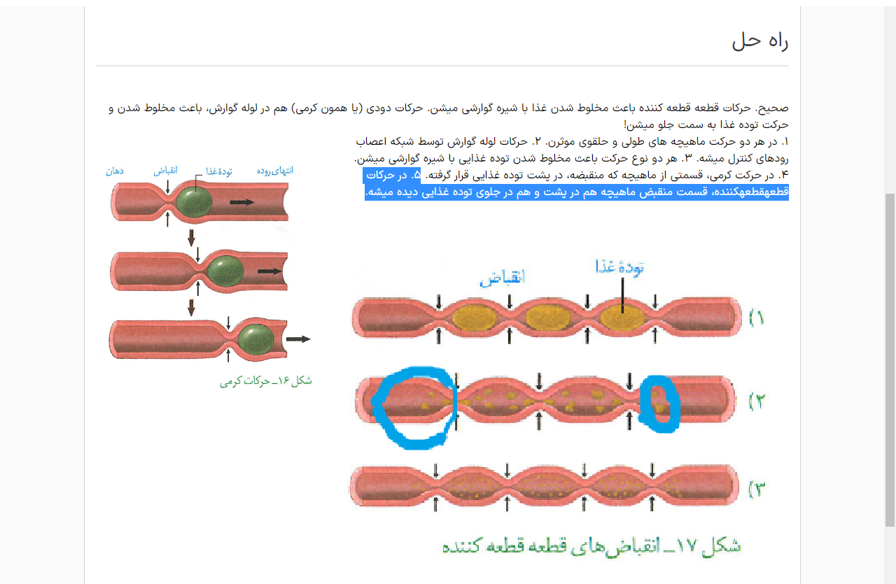 سلام ببخشيد اين مورد در پاسخنامه تمرين قبل تست3 هستش: ۲. حرکات لوله گوارش توسط شبکه اعصاب روده ای کنترل میشه. بعد الآن يكچيزي براسا صحبت هاي استاد فقط از مري به بعد اينطور هستش و الآن مورد نقضي براش هست كه ميشه حلق. توي حلق حركت كرمي داريم ولي شبكه اعصاب روده اي در اون نقشي ندارن...