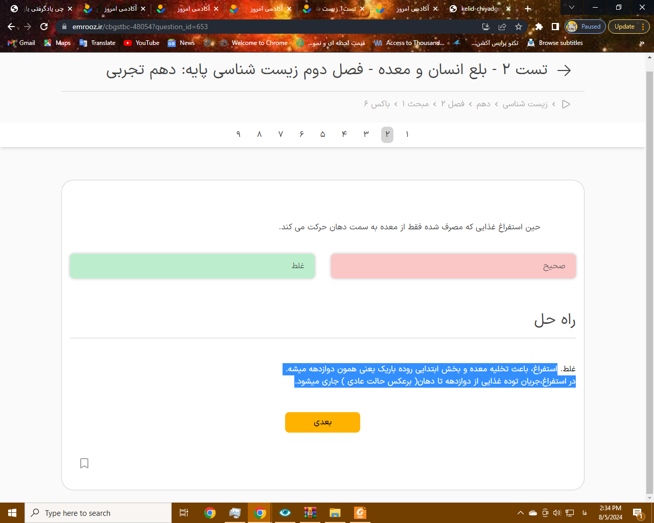 من الان متوجه نشدم استاد یه بار گفتن حلق از ماهیچه اسکلتی تشکیل شده و برای بلع حرکتش غیر ارادی ماهیچه اسکلتی هست و ماهیچه صاف از مری شروع میشه قسمت الف تست شش رو چون مشخصات ماهیچه اسکلتی و داد سوال غلط اعلام کردن میشه راهنمایی بفرمایین