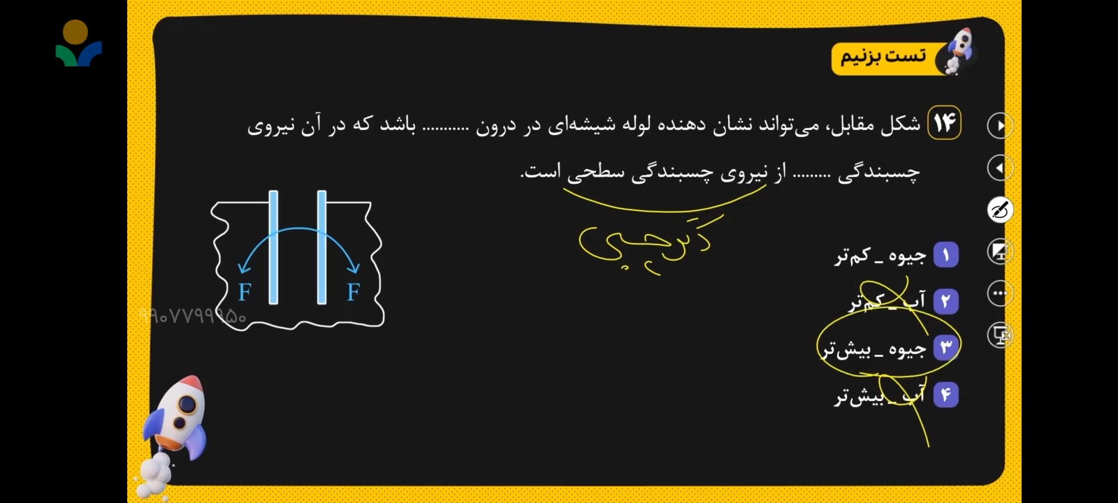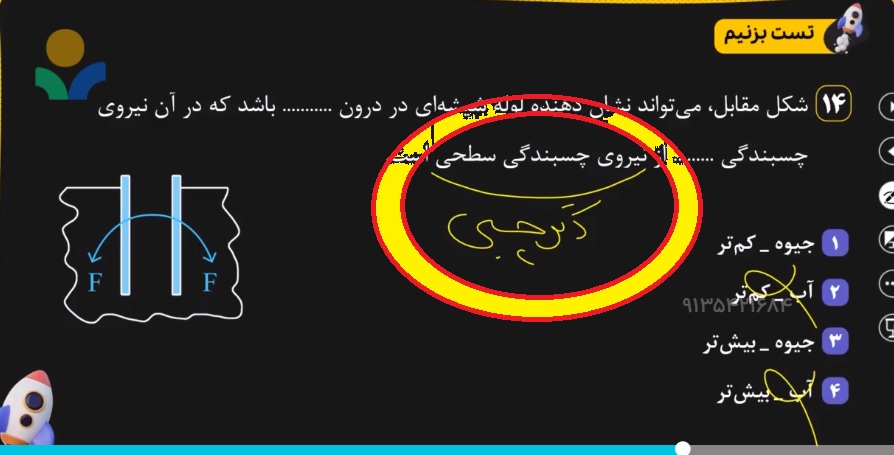 در جیوه دگر چسبی بیشتر از هم چسبی است. پس چرا نشد گزینه یک و شد گزینه 3؟