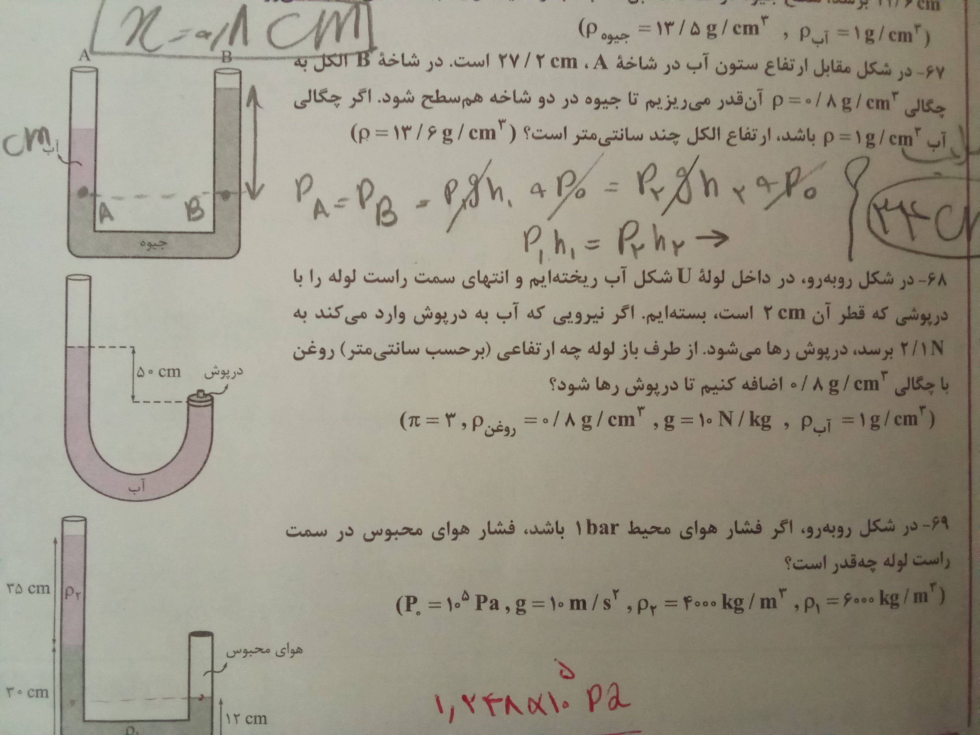 سلام دوست عزیز>< شکل، یک لوله مویین هستش؛ که سطح مایع درش برامده و پایین تر از دو طرفش هست
