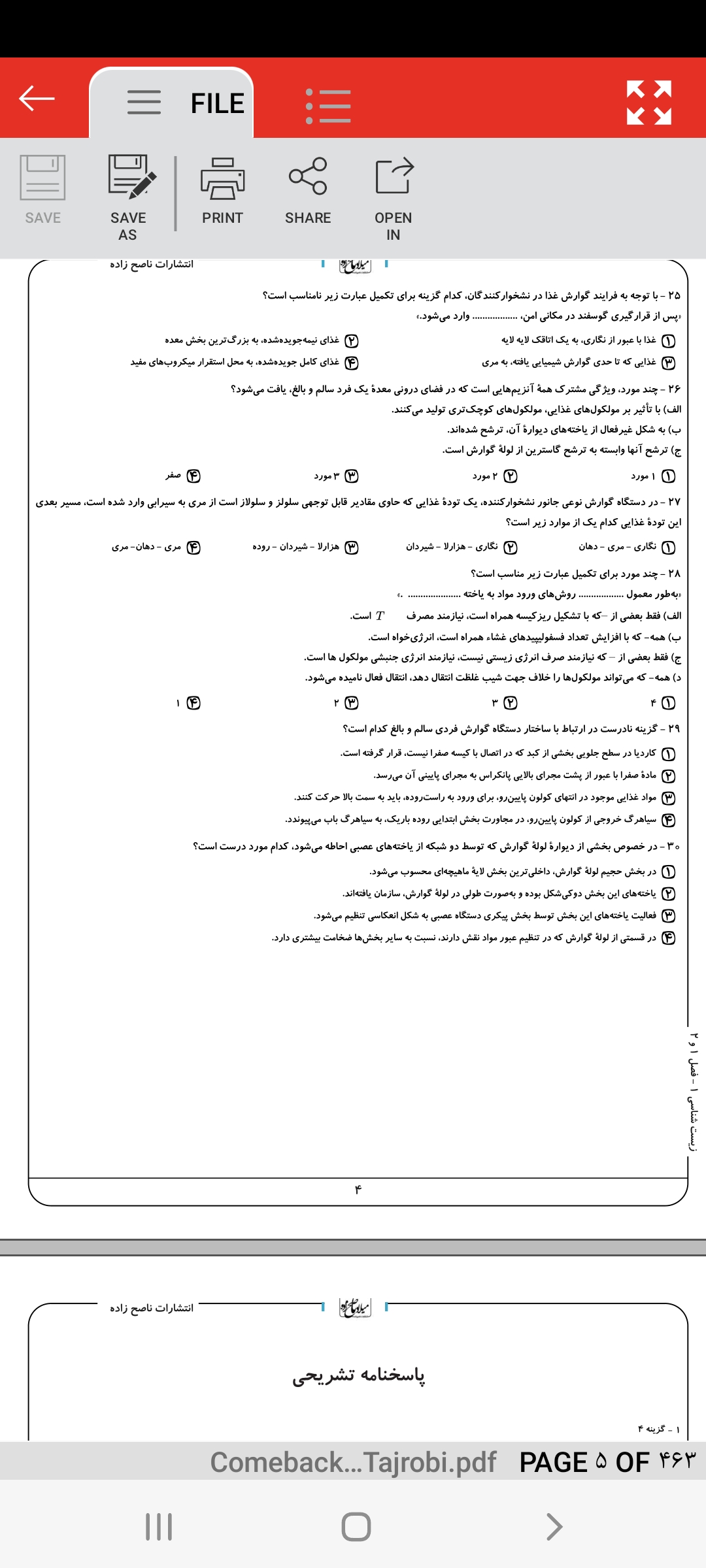 سلام دوستان وقت بخیر تست ۲۹ مورد سومش نباید غلط باشه؟؟ چون چیزی ک توی روده بزرگ هس ک دیگه بهش نمیگیم مواد غذایی