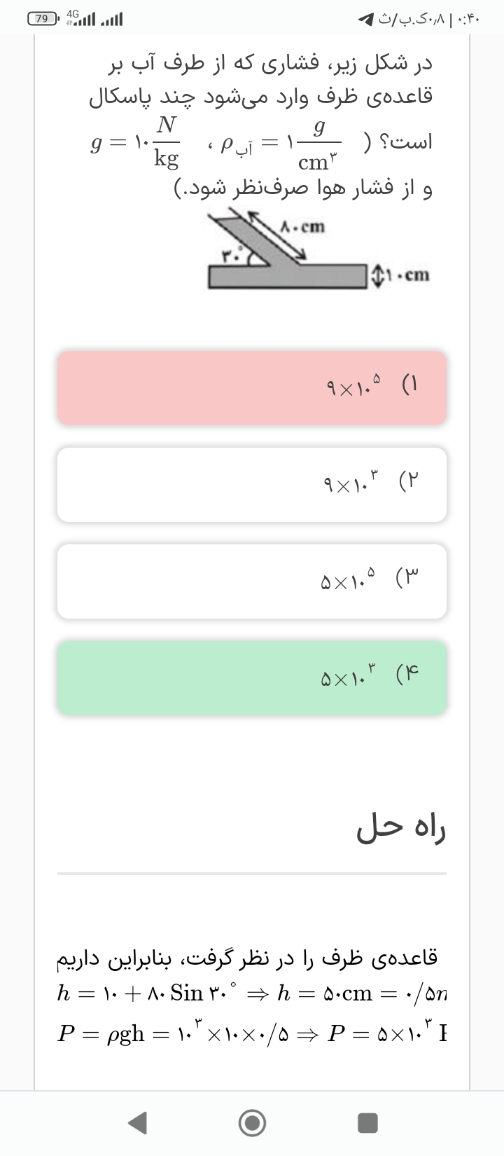 سلام ببخشید اون ۵ دهم رو چطور به دست آوردن فرمول سینوسم نوشتم که میشه یک دوم و حلش کردم شد ۴۵ ضربدر ۱۰ به توان منفی ۲ 🌷🌷