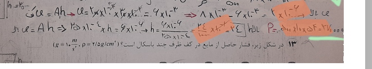 سلام خسته نباشید، h لوله باریک از ارتفاع کل ظرف کمتره طبق شکل اما ارتفاع ابی که به دست اومده ( یعنی اونی که h رو برابر 80 به دست اوده )اصلا به ارتفاع ظرف نمیخوره ، مگر اینکه شکل ظرف به سوال نخوره مگه میشه ارتفاع لوله باریک از ارتفاع کل ظرف بیشتر شده باشه ؟