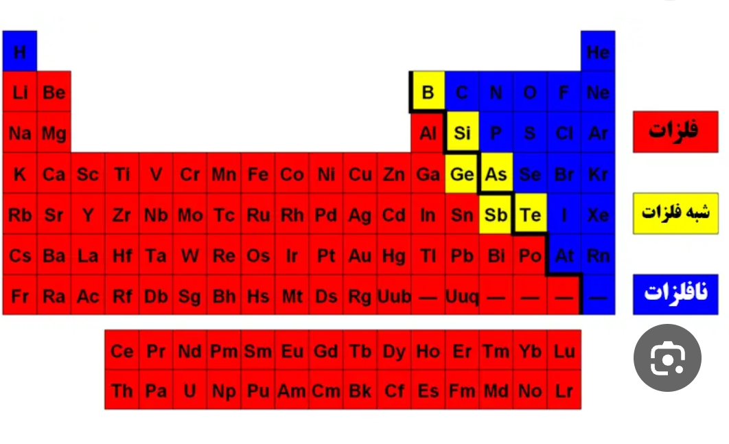 کسی جدول تناوبی مرتبی داره که فلز، نافلز، شبه فلز و ..رو دقیق مشخص کرده باشه؟