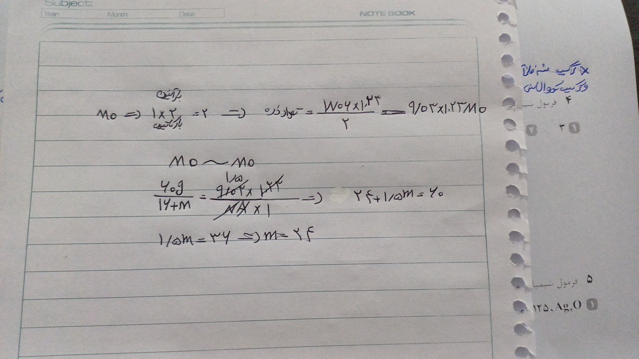 صرفا نیازه که ساده کردن اعداد و به دست اوردن مقدار مجهول M رو انجام بدین M جرم مولی فلز m هست