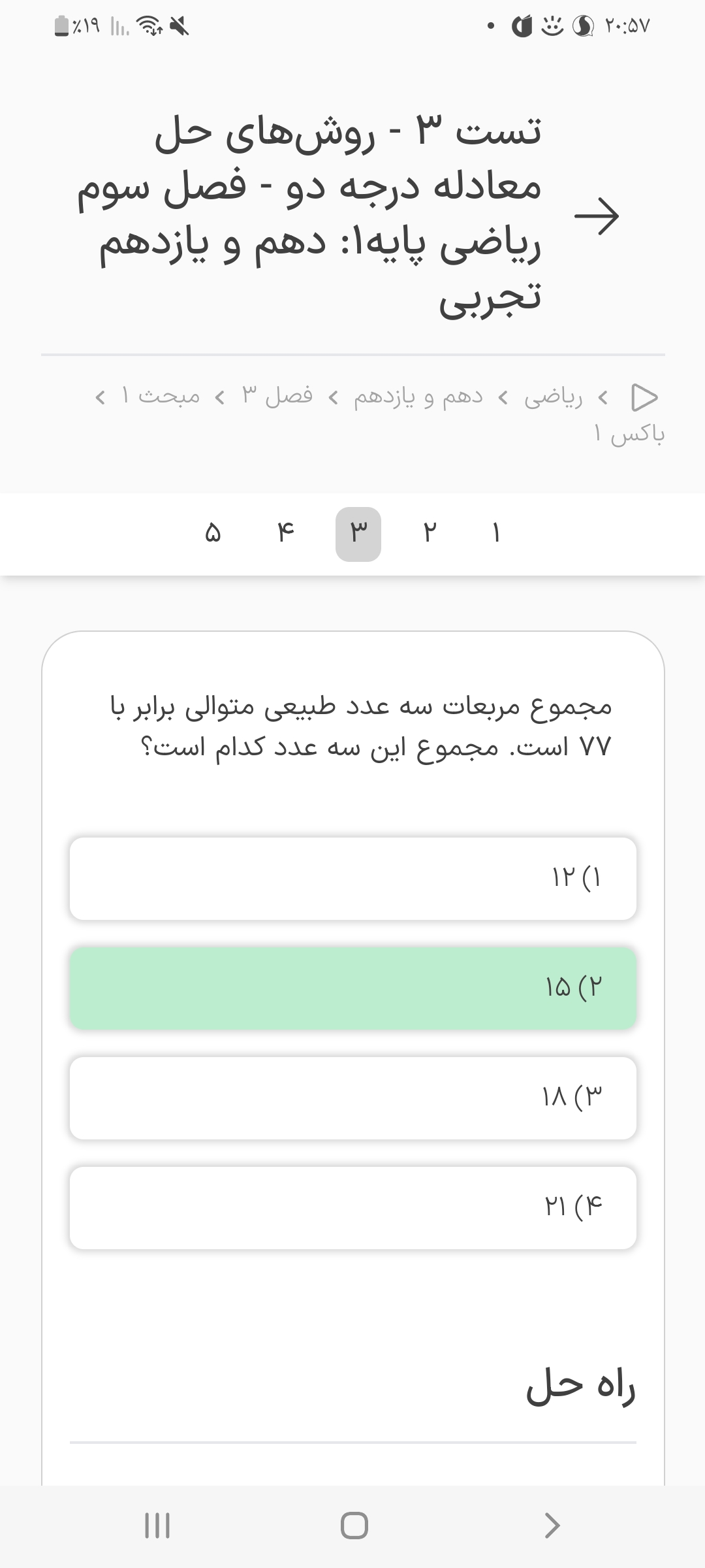 سلام ببخشید مگه نگفته یکی از جواب های معادله رو به دست بیاریم خب ما ۳- رو به دست آوردیم اگه تو گزینه ها بود می‌تونستیم بزنیم ؟