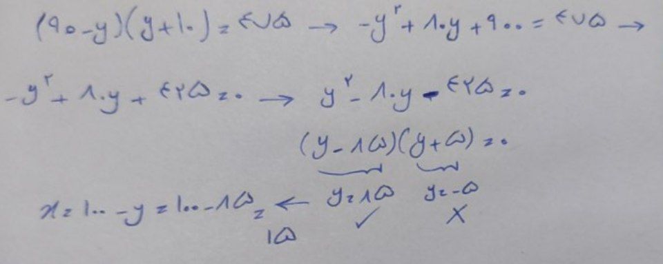 سلام و درود ایکس یه عدد کوچکتر از صد هست چون با y باید جمع بشه تا بشه ۱۰۰ اونوقت ایکس منهای صد میشه منفی؟ پول می‌تونه منفی باشه ؟ پس ۱۰۰ رو باید منهای ایکس کنید حالا میشد کلا بجای y با ایکس همینو نوشت فرقی نداره