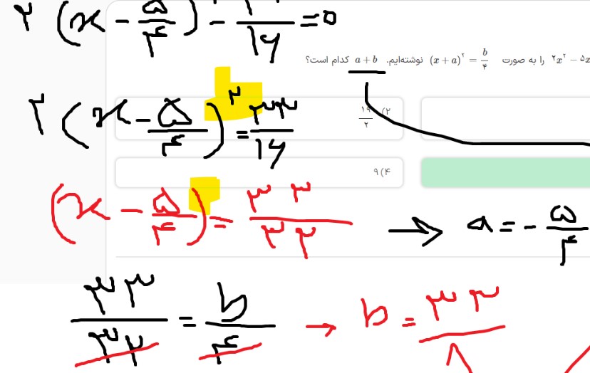 25/16 همون جمله دوم به توان 2 هستش! اول این(x-5/2) رو x-5/4 در نظر گرفته که بعد از اتحاد مربع شده x-5/2 و ... بازم اگه متوجه نشدید بگید تا مجدد و بیشتر توضیح بدم