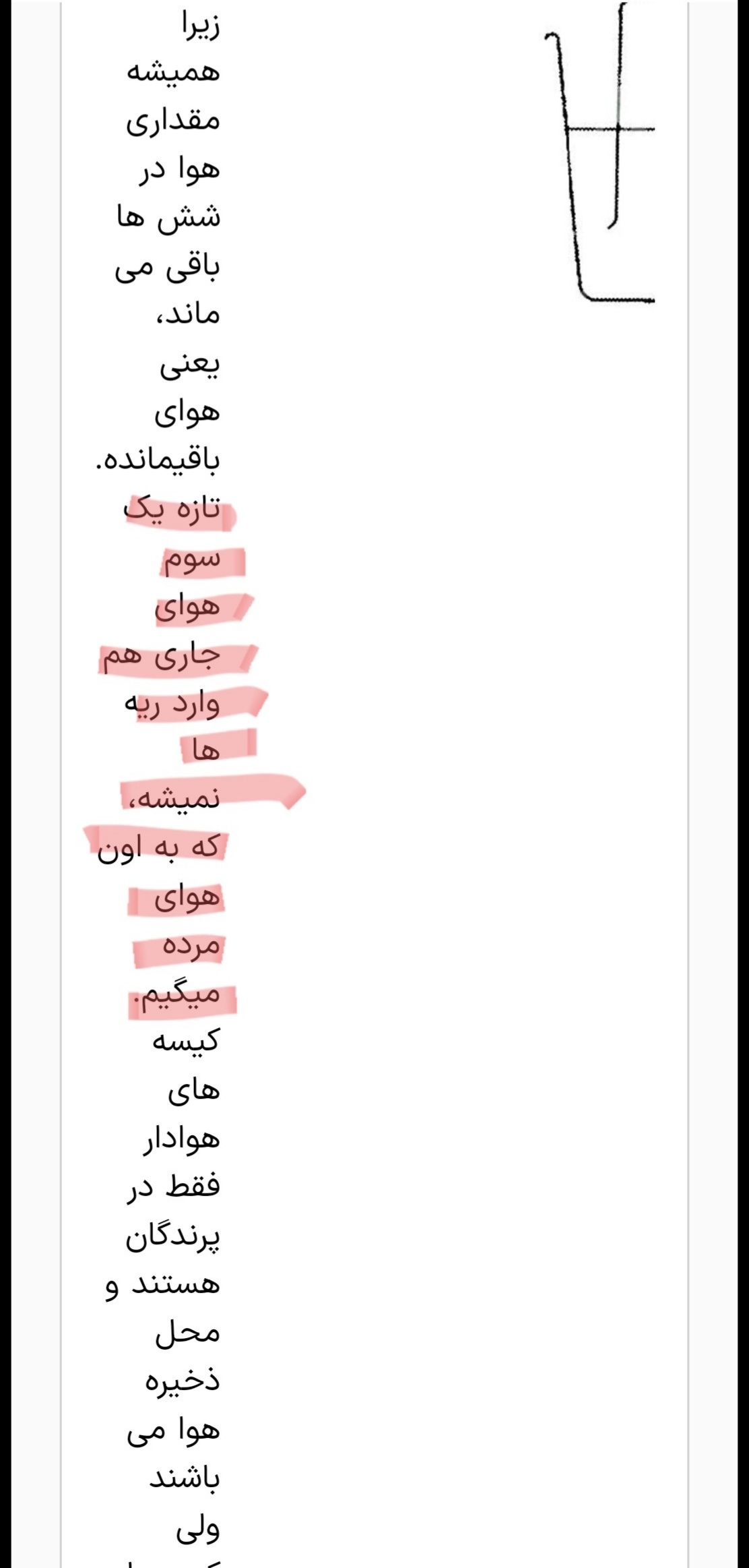 @زینب علوی نیا ببین اتفاقی که در ظرف ب میفته،اینه که هوای داخل ظرف وارد ریه شما میشه و فشار هوای ظرف کم میشه و همین باعث میشه هوا از طریق نی وارد آب بشه و بعد وارد ظرف بشه