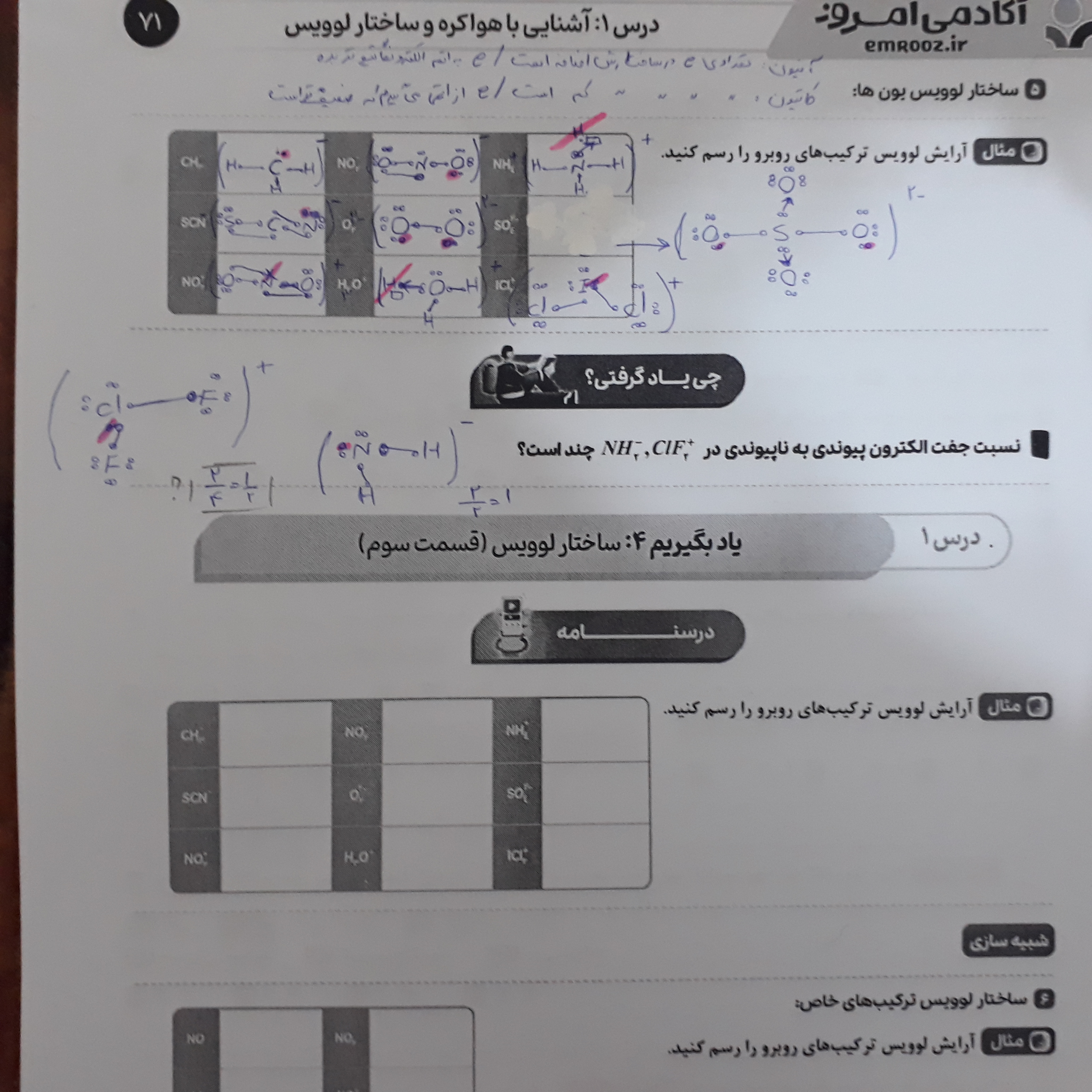 سلام . جواب چی یاد گرفتیم برای یون ClF برابر ۴ و جواب یون NHبرابر ۱است ؟