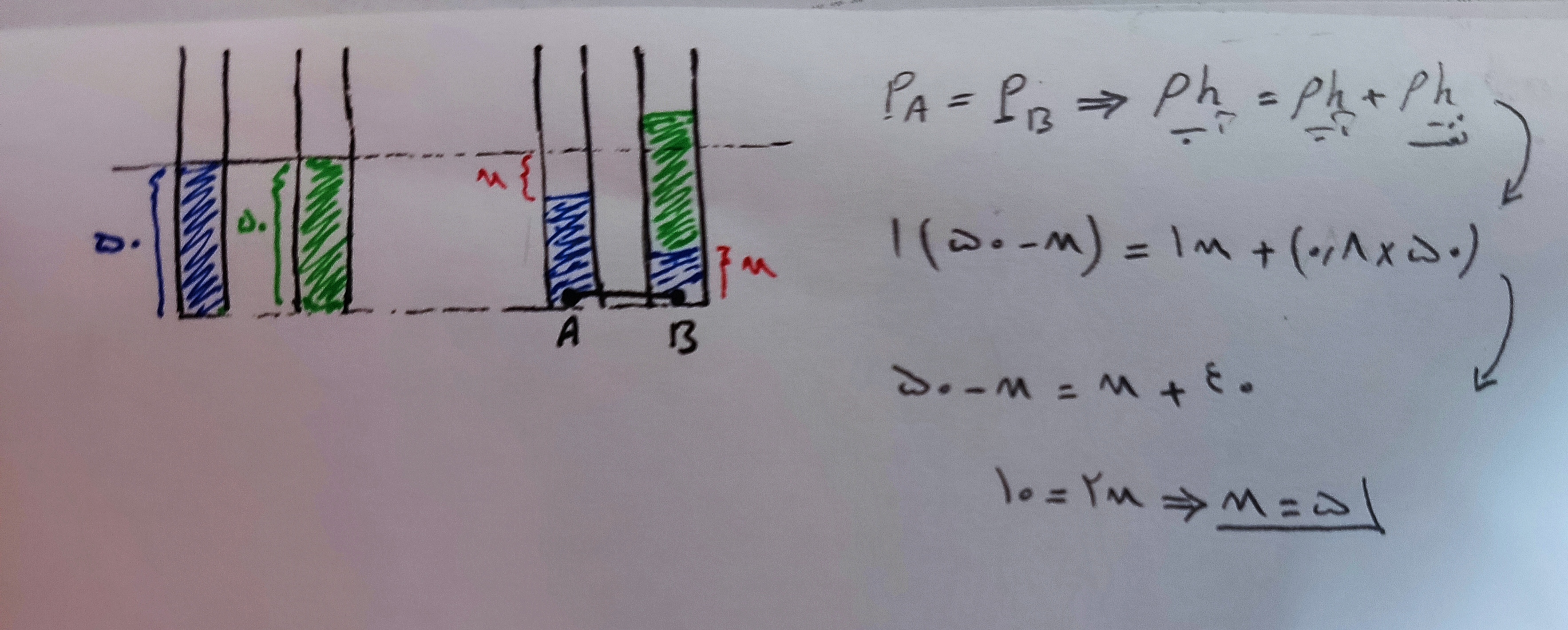 @پینار فرج زاده بستگی به تیپ سوال داره توی این تیپ سوال،ما اومدیم ارتفاع کل ستون هر کدوم از مایع ها رو برابر با دو ایکس به علاوه اچ گرفتیم (دقت کنید ارتفاع کل ستون هر مایع با هم برابر و ۵۰ بود)