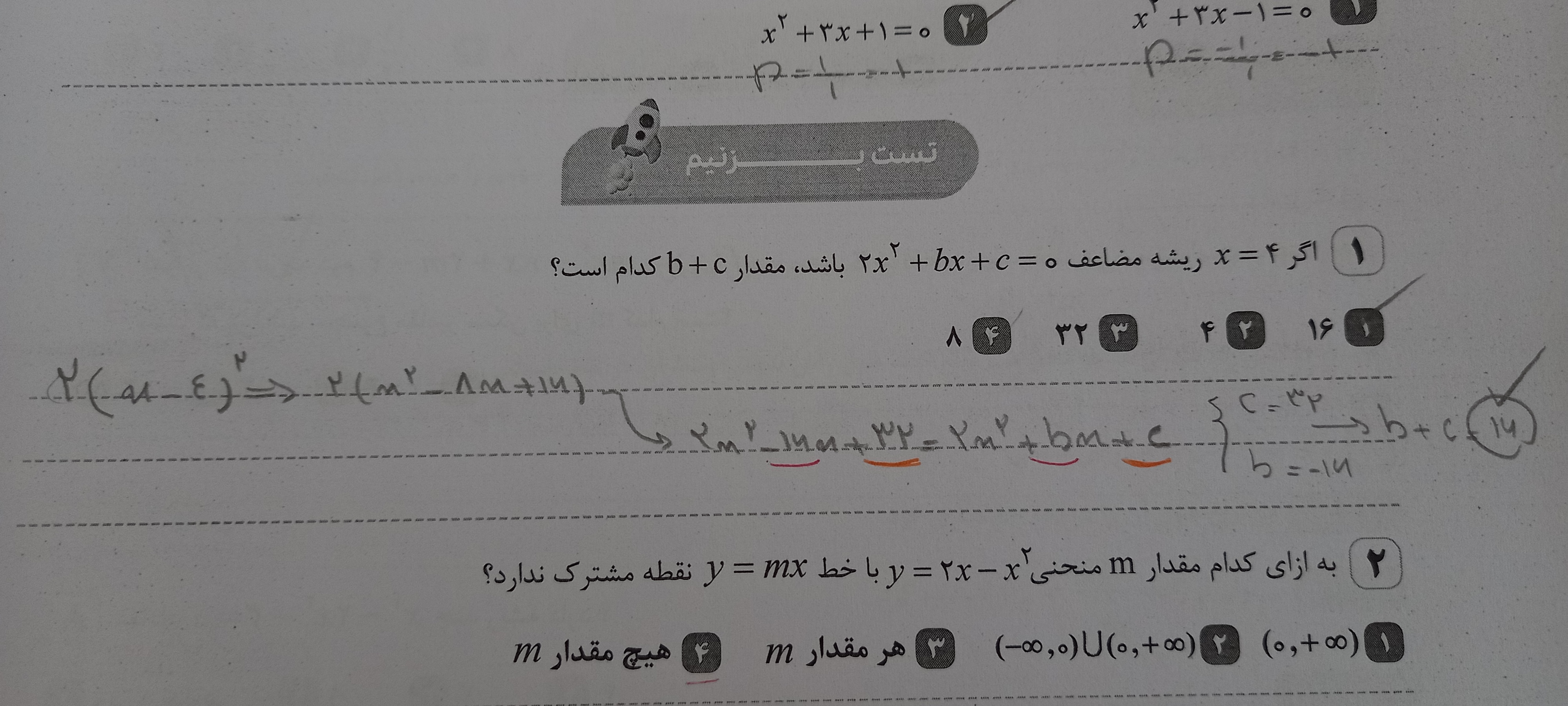 سلام و درود در صورت سوال اگر دقت کنی، ایکس به توان ۲ ضریب دو داره پس پشت پرانتزت ی ضریب دو اگر بذاری، جوابات درست در میان