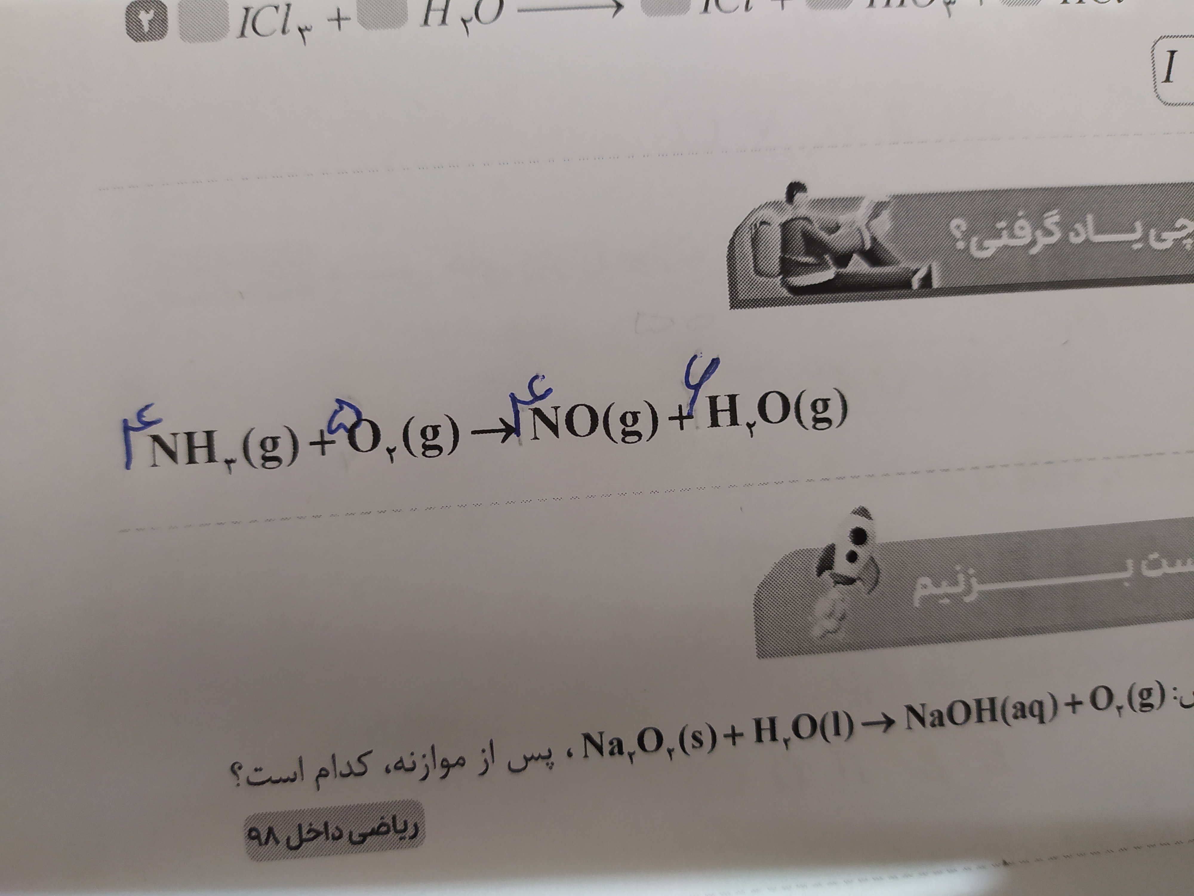 نه na2o2 بیشتره naoH کلا 3 تاس ولی Na2o2 چهارتاس پس باید از اون شروع کنیم ولی اگه از اونم شروع کنی اخرش به نظرم درست درمیاد
