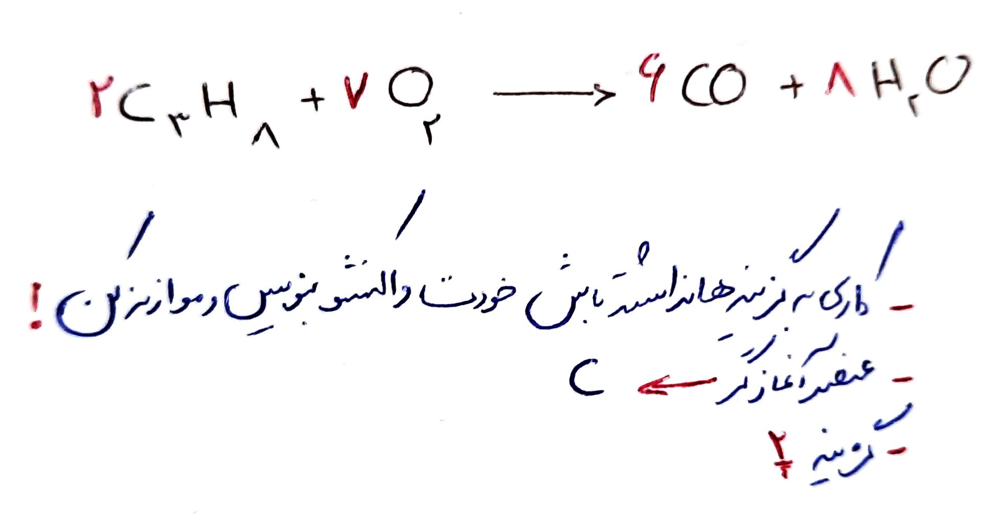 @محدثه اباذری خیلی ممنون...فقط قسمت co2 رو اشتباه موازنه کرده بودم