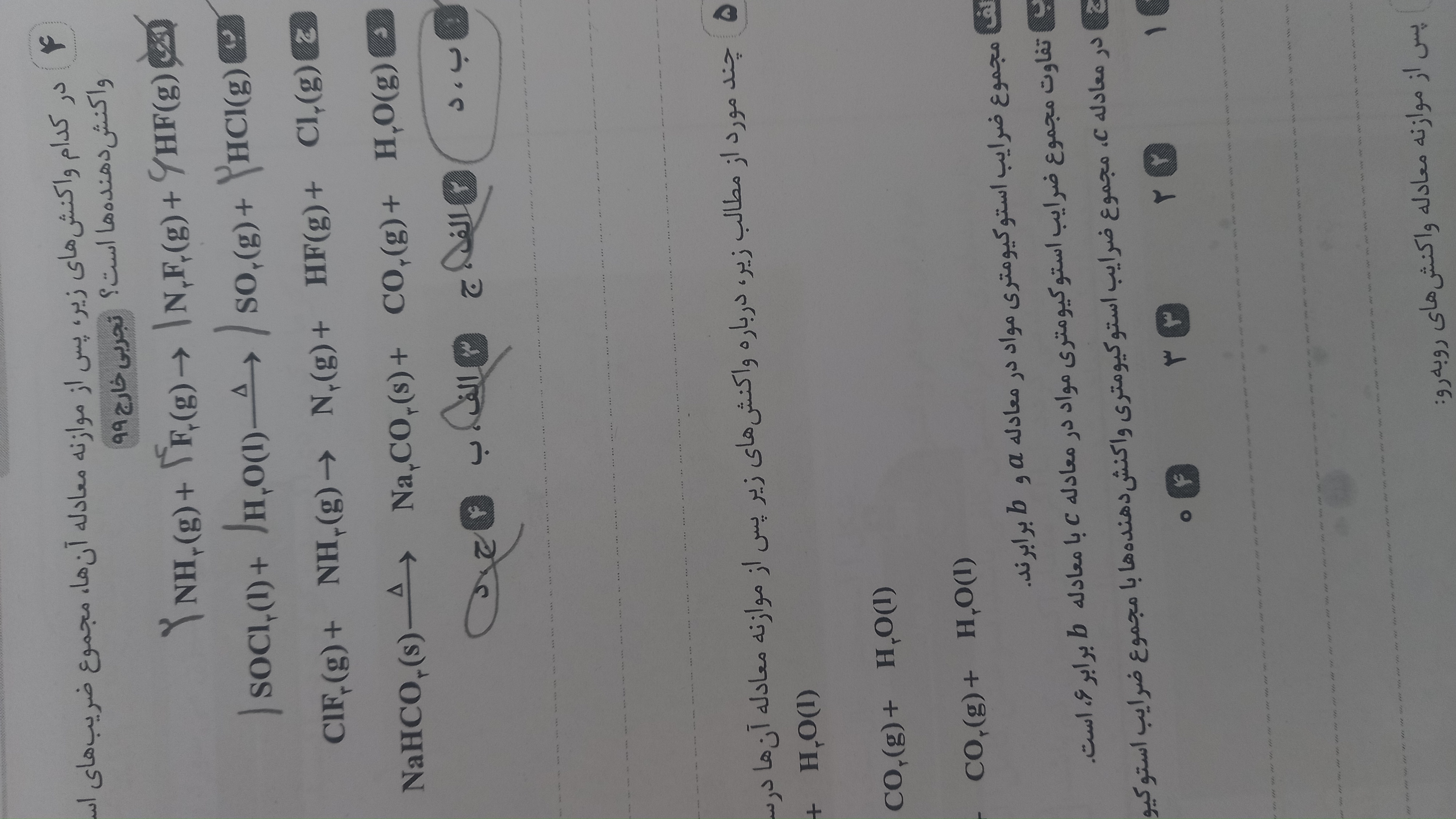 سلام من گزینه ی ج رو متوجه نشدم . بعد موازنه سمت چپ 2 و راست 3 شده یعنی نسبتشون میشه 2/3 نه 3/2! دسته یا من اشتباه میکنم؟