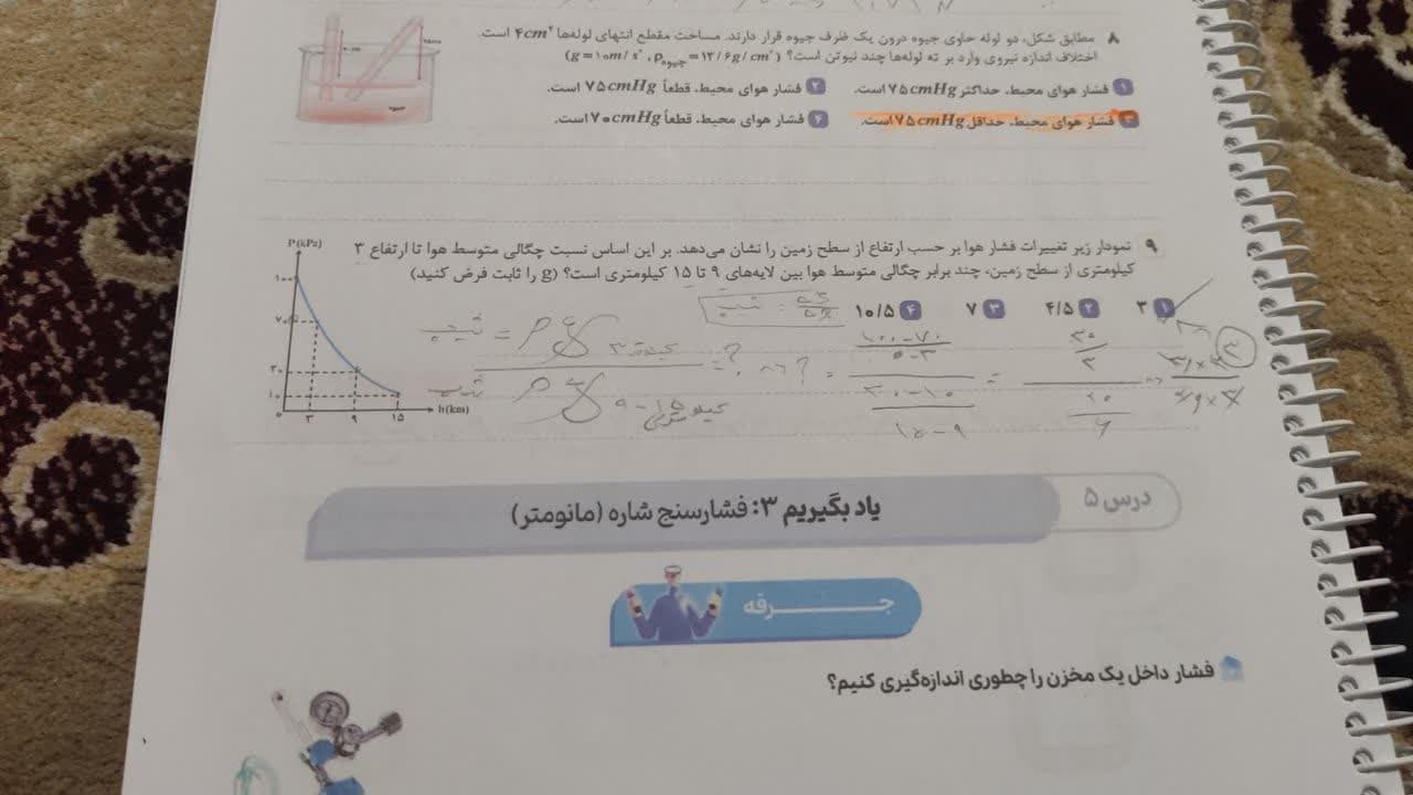این سوال رو میتونیم بر اساس همون نکته استاد که گفتن شیب نمودار فشار ارتفاع برابر چگالی در شتاب هست بریم؟