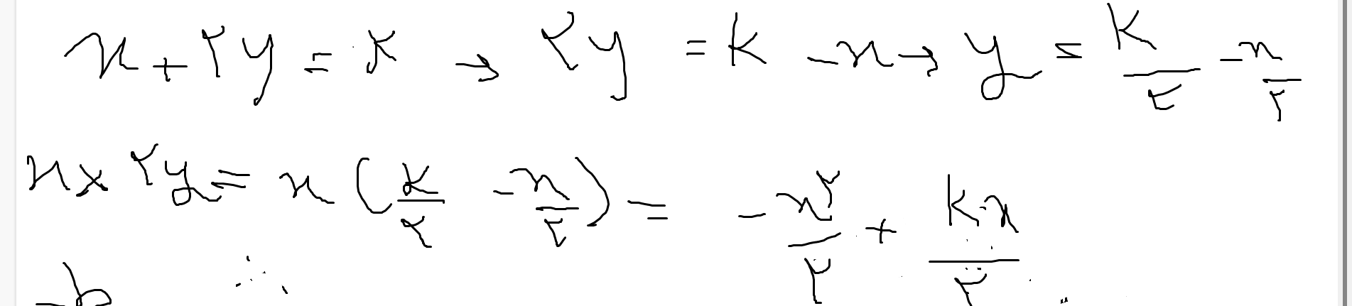 سلام خسته نباشید. ببخشید اونجایی که x+2y=k شد. یعنی بعدش عدد ٢ yمون رو بردیم زیرk که شد k/2؟