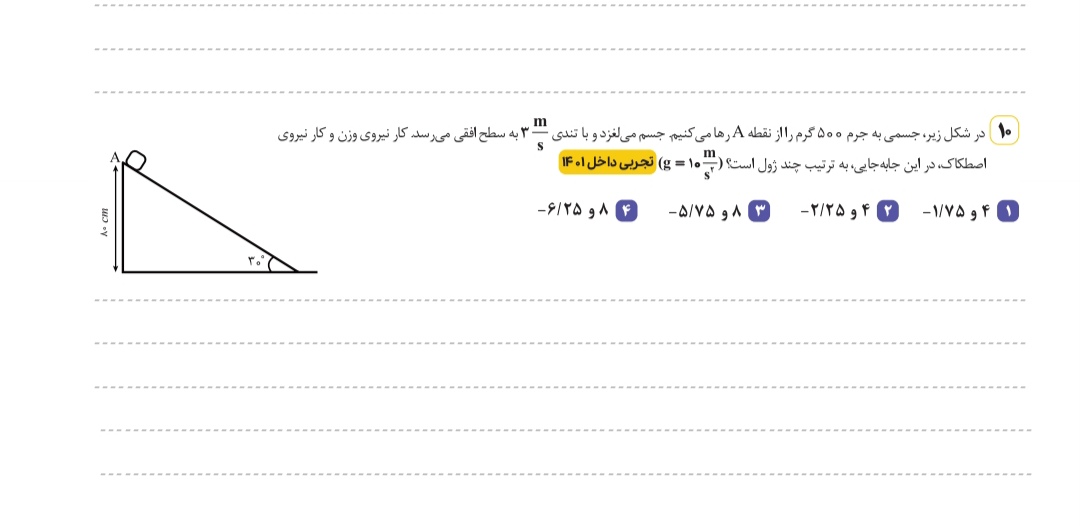 سلام ببخشید میشه لطفا تست ۱۰ را حل کنید و بگیید چجوری کار نیروی اصطکاک را میشه به دست آورد