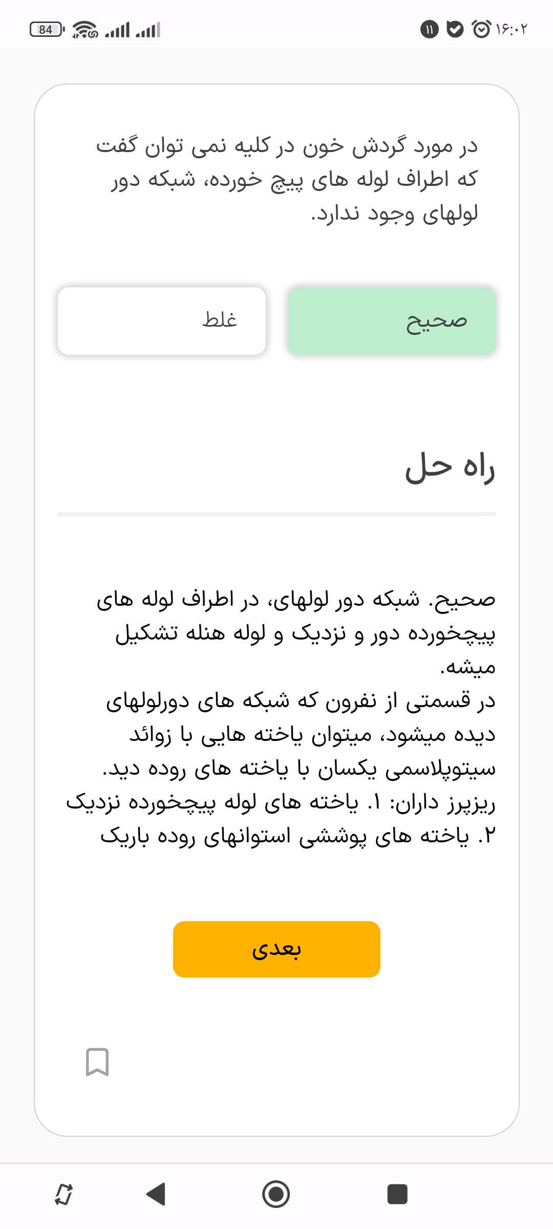 سلام توی تمرین 9 آورده شده که : ( هر شبکۀ مویرگ خونی مرتبط با تولید ادرار در گردیزۀ انسان سالم و بالغ، از رگی با قدرت کشسانی کم منشأ می گیرد. ) و پاسخنامشم اینه : ( غلط. کلافک و شبکه دورلولهای هردو از سرخرگ ها منشا میگیرند و همونطور که میدونید سرخرگ ها به علت داشتن رشته های الاستیک زیاد در لایه میانی خود، خاصیت ارتجاعی بسیاری دارند. ) خب الان مگه سرخرگ هایی که کلافک و شبکه دورلوله ای از اون ها انشعاب گرفتن جزو سرخرگ های کوچک حساب نمیشن ؟ کتاب هم توی صفحه 56 زیست دهم میگه که در سرخرگ های کوچک تر میزان رشته های کشسان کمتره و ماهیچه بیشتر . الان با توجه به این توضیحات نباید درست بگیریم؟