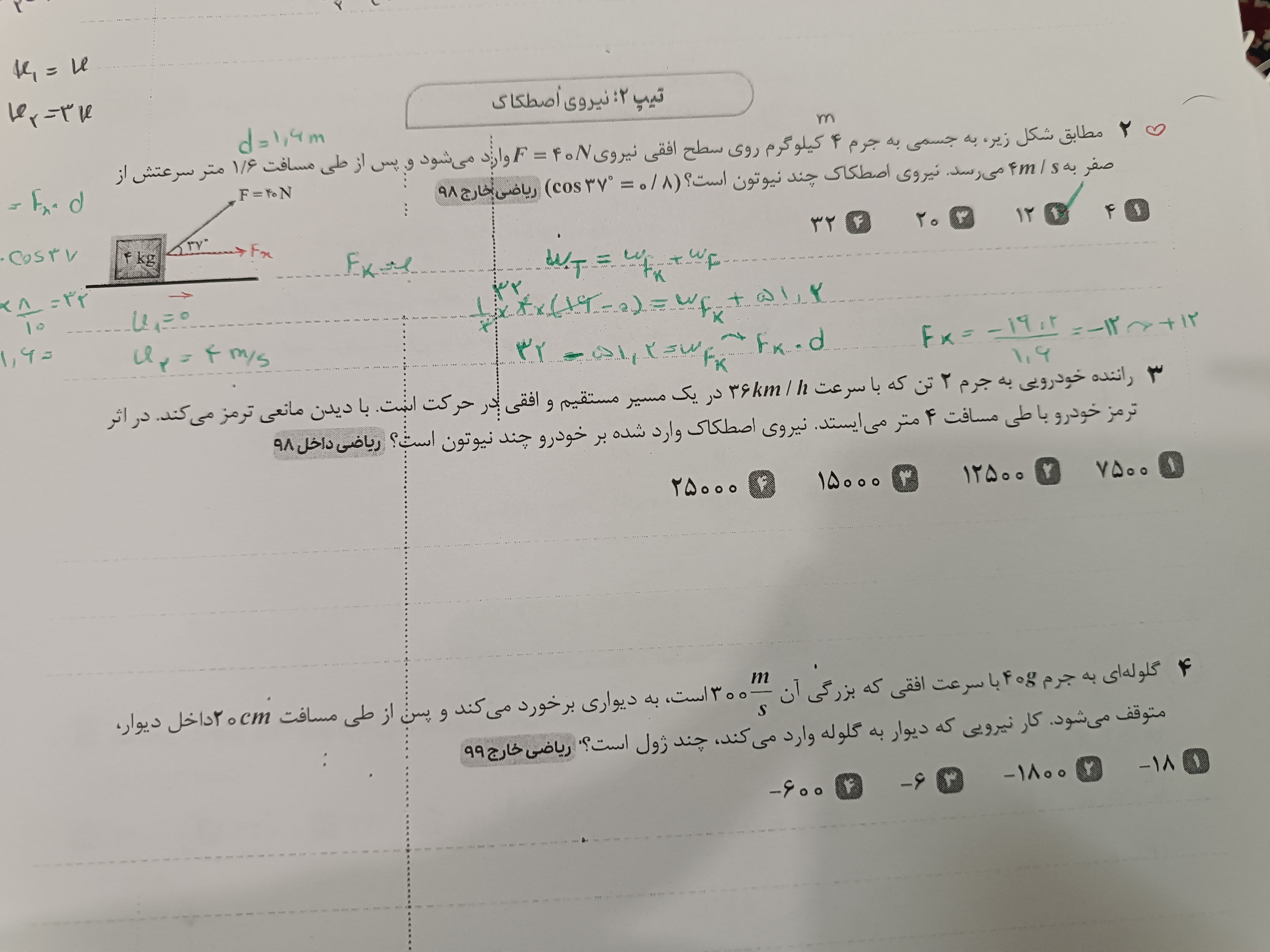 سلام من این است و اینجوری حل کردم .درسته ؟ فقط قسمت آخرشم گفتم چون نیروی اصطکاک منفی هست و خلاف جهت در یه منفی دیگه ضرب کردم .!