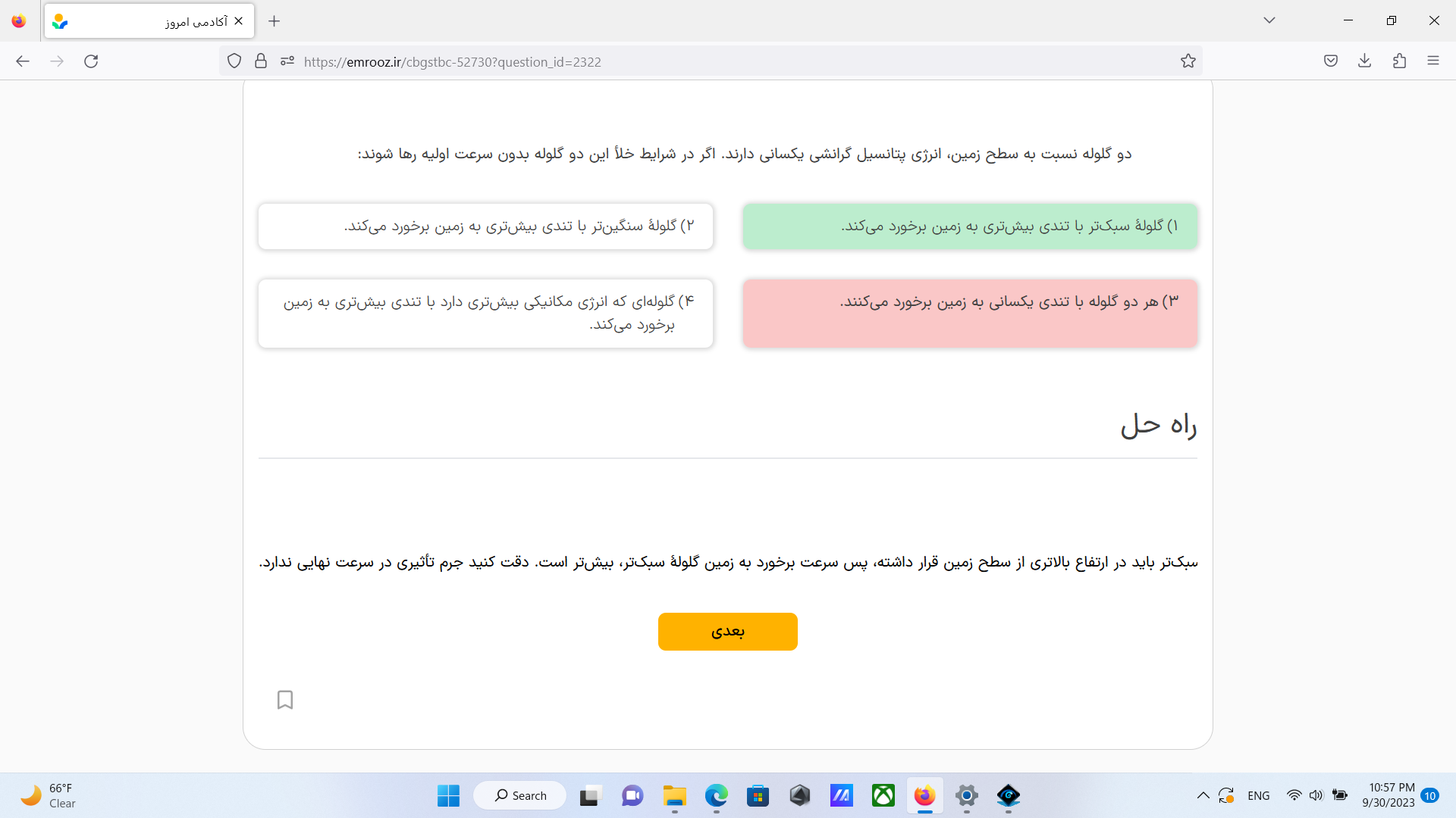 سلام توی این سوال،چون جرم ها با هم خط می‌خورند،اهمیتی نداره که جرمشون چه تفاوتی داره و با تندی یکسانی به سطح زمین میرسن کجا استاد این حرف رو زدن که تندی هاشون متفاوت میشه؟ زیر ویدیوی مربوط به همون قسمت کامنت جدید بذارید و تایم مشخص کنید 🌷 (لطفا ریپلای نکنید 🌷🌷💙)