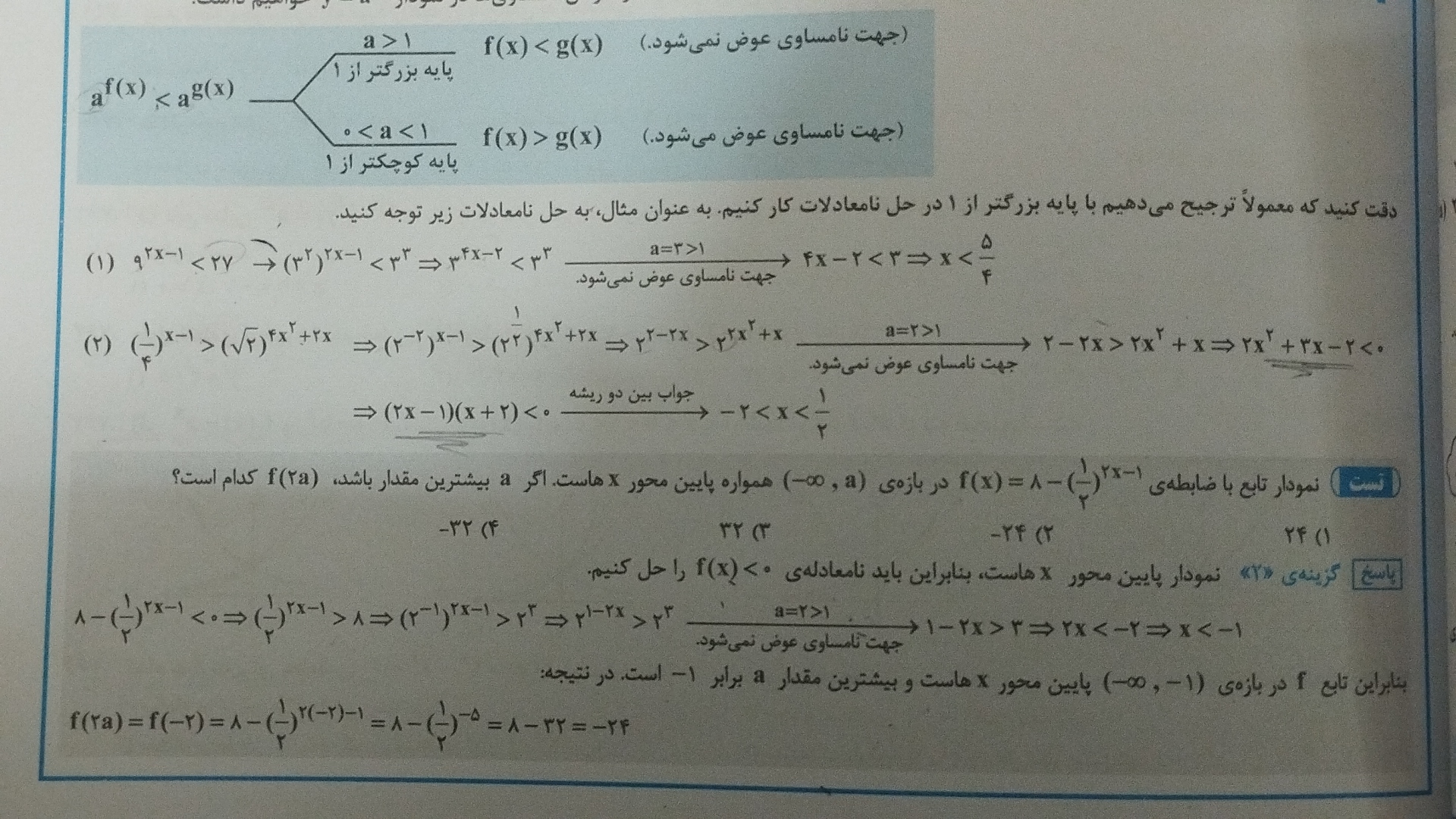 سلام منظور شما اینه که پایه اون تابع نمایی، عدد مثبت بزرگتر یا کوچکتریه؟