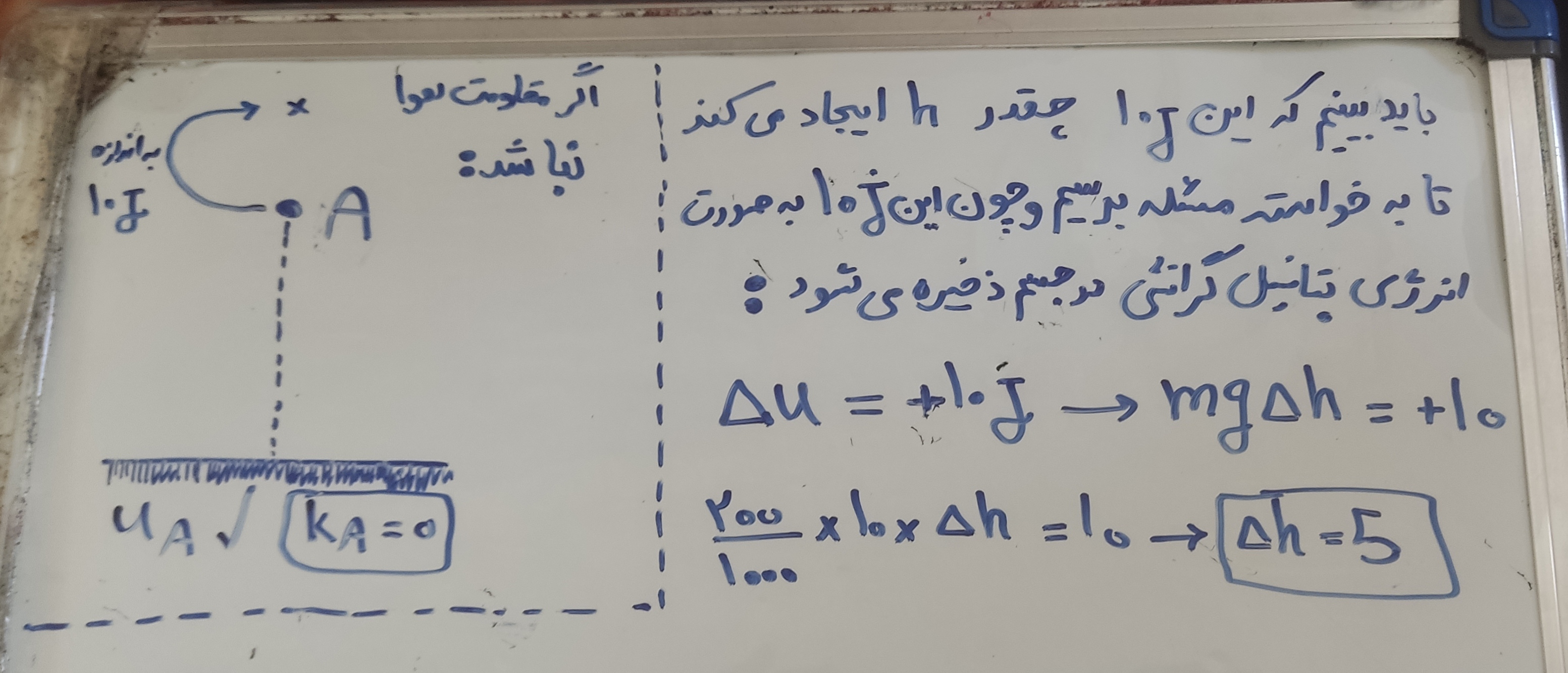 اقای رشادی بنابه وویسی که فرستادید بنابه اطلاعات سوال می تونیم اون مقاومت هوا که توی این سوال برابر 10 هست رو برابر k یا u قرار بدیم چون این انرزی ها همواره به هم تبدیل میشن درسته یا نه