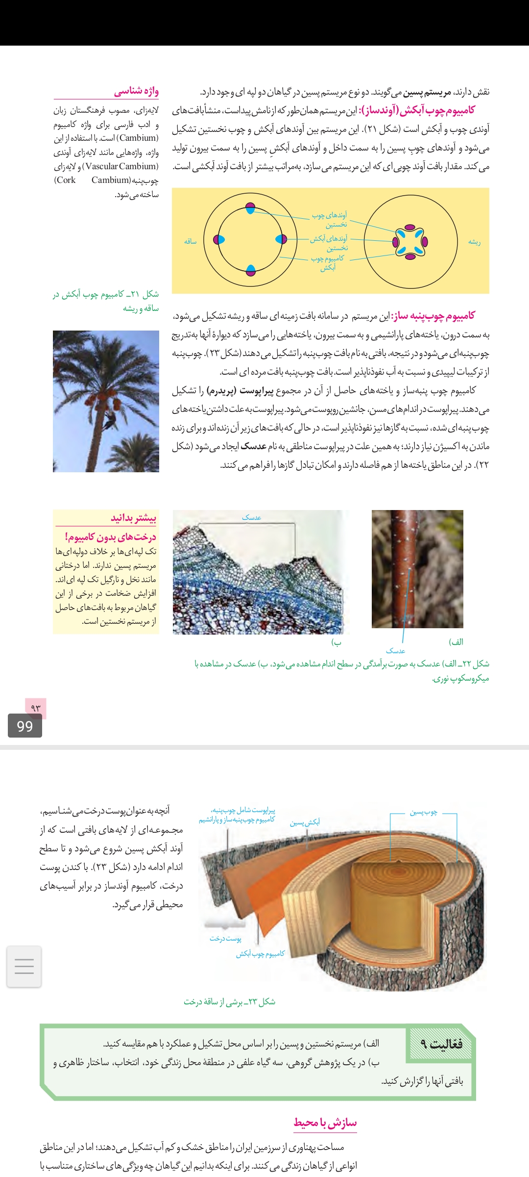 سلام. بین بن لاد اوند ساز و چوب پنبه ساز ، پارانشیم و ابکش پسین وجود داره ،که همشون سلول هایی زنده هستن و پروتوپلاستشون فعاله و فعالیت میکنه. گزینه چهارم: پوست درخت شامل پیراپوست و ابکش پسین هست . این قسمت شامل بن لاد چوب پنبه ساز هست ، این بن لاد در بافت زمینه ای تشکیل شده و شروع به فعالیت کرده.