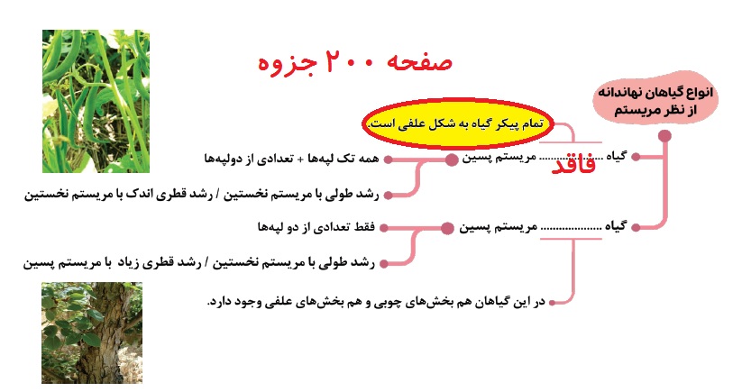 @سید محمد متین رشادی ببخشید اینکه می فرمایید گیاه علفی می تواند مریستم پسین داشته باشه، چه صفحه ای هست؟ از طرفی صفحه 200 جزوه استاد دقیقا تاکید کرده اند گیاه علفی ( تک لپه یا دو لپه) فاقد مریستم پسین است.