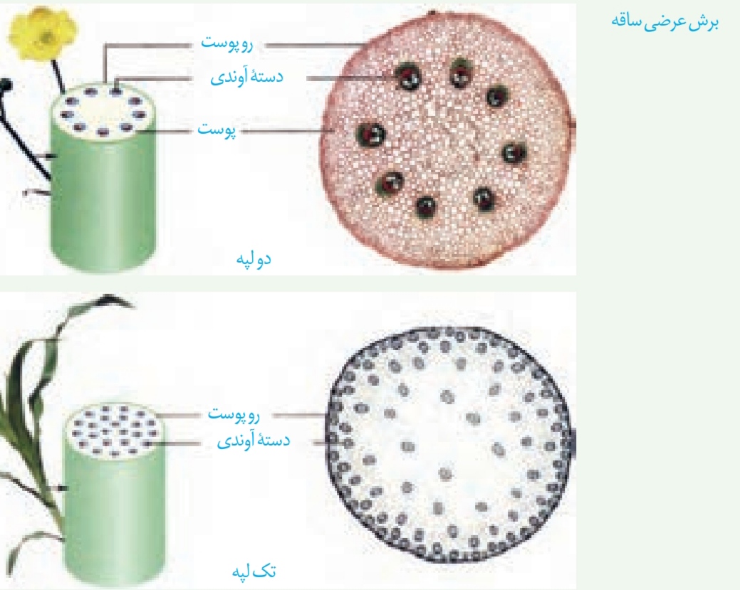 سلام. در ساقه گیاه دو لپه مرز بین روپوست و بافت اوندی کاملا مشخصه و با پوست پوشیده شده. اما پوست و استوانه اوندی مرز مشخصی نداره. لطفا به تصویر توجه کنین.