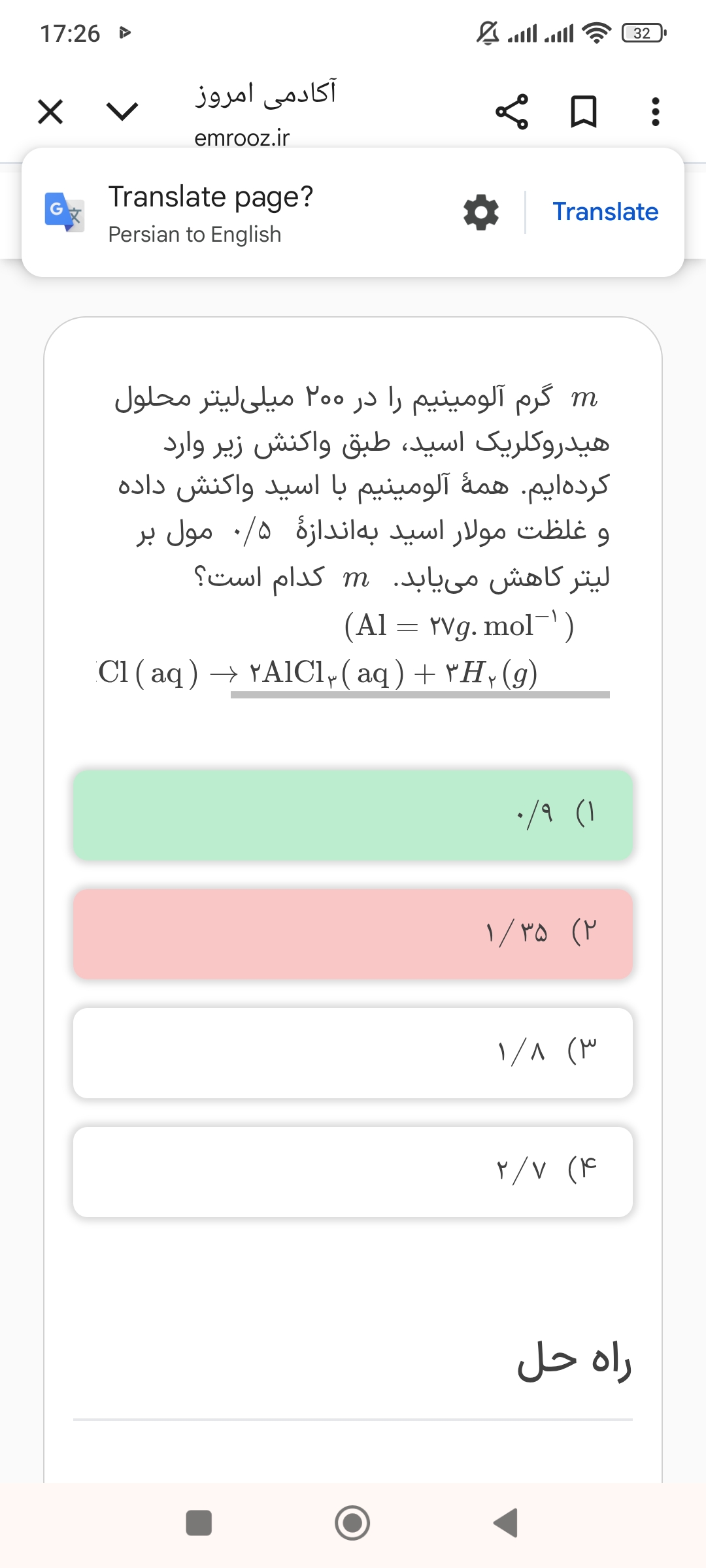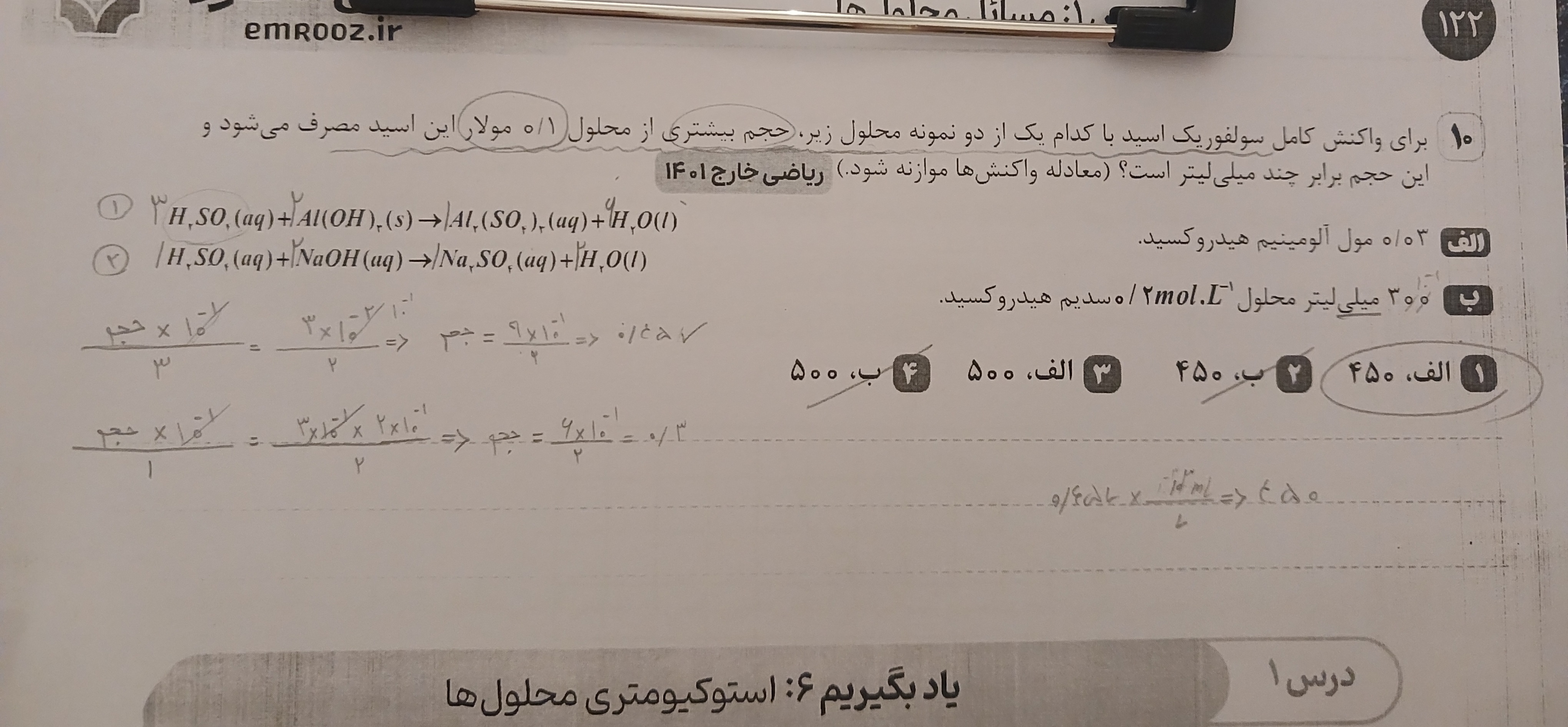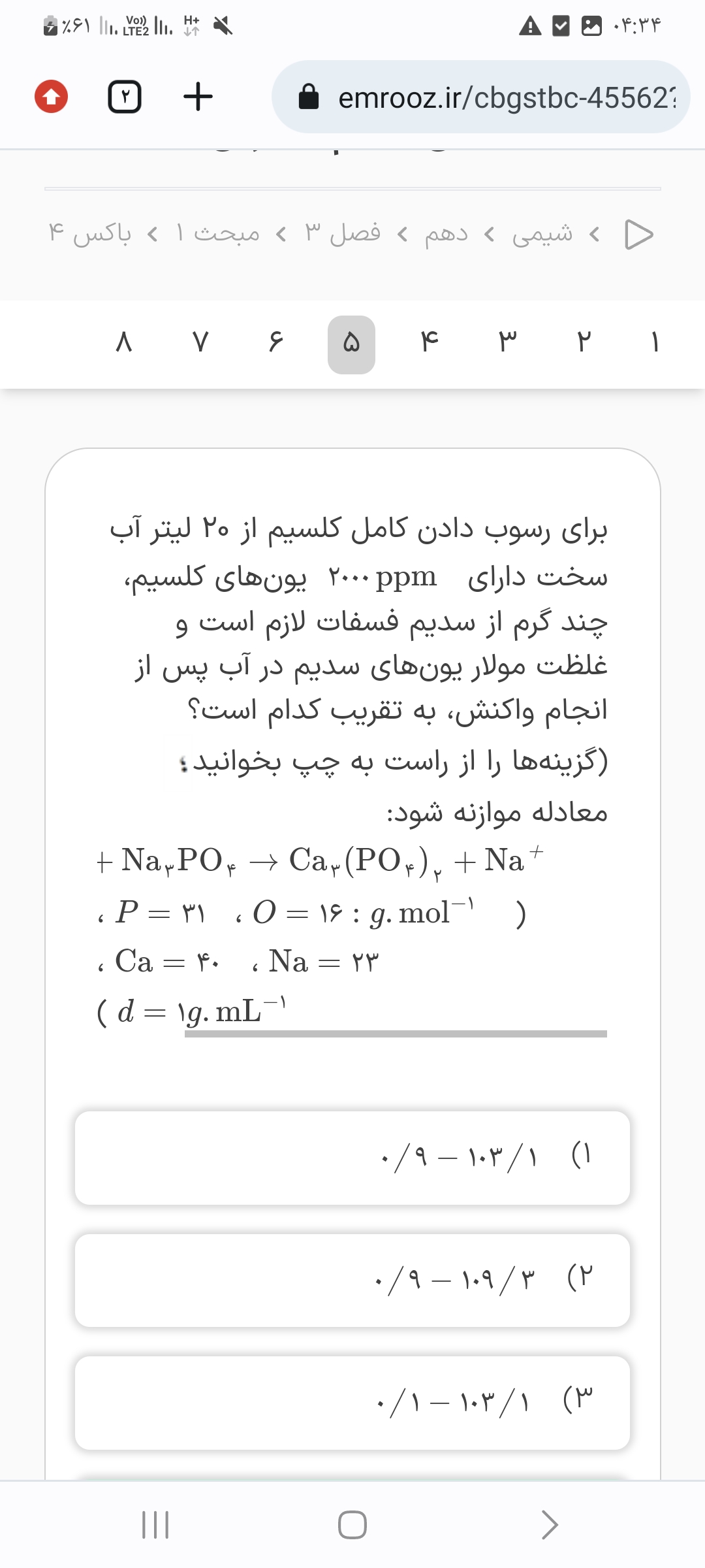 اول سوال گفته ۰/۸ مولار بوده غلظت HCl بعد انجام واکنش ۰/۳ مولار مونده پس ۰/۵ مولار مصرف شده