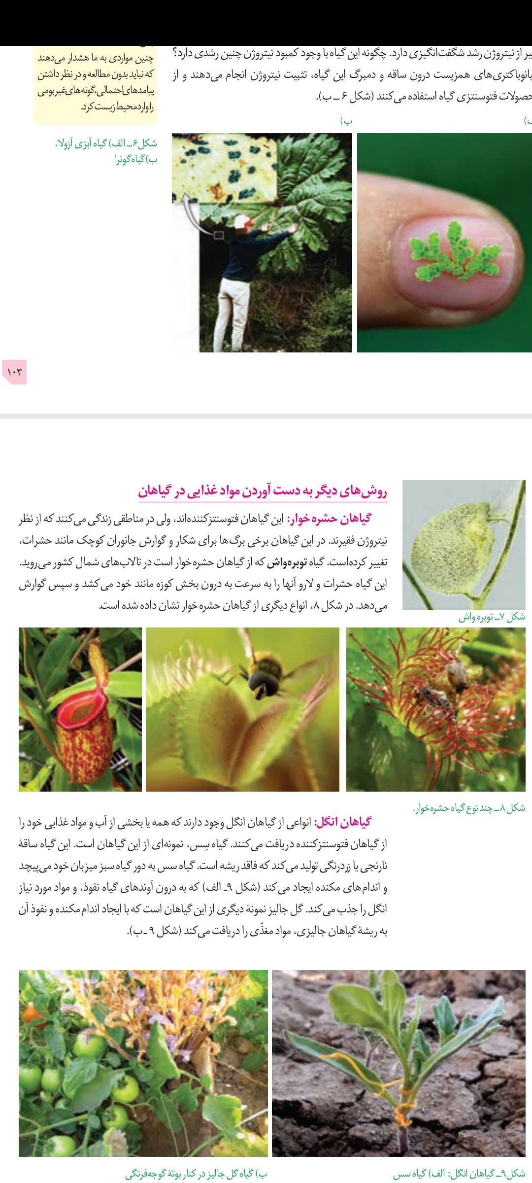 درود " گیاه توبره واش که از گیاهان حشره خوار است در تالاب های شمال کشور می روید " طبق جمله کتاب 👆 توبره واش گیاه آبزی و گزینه ۳ صحیحه.