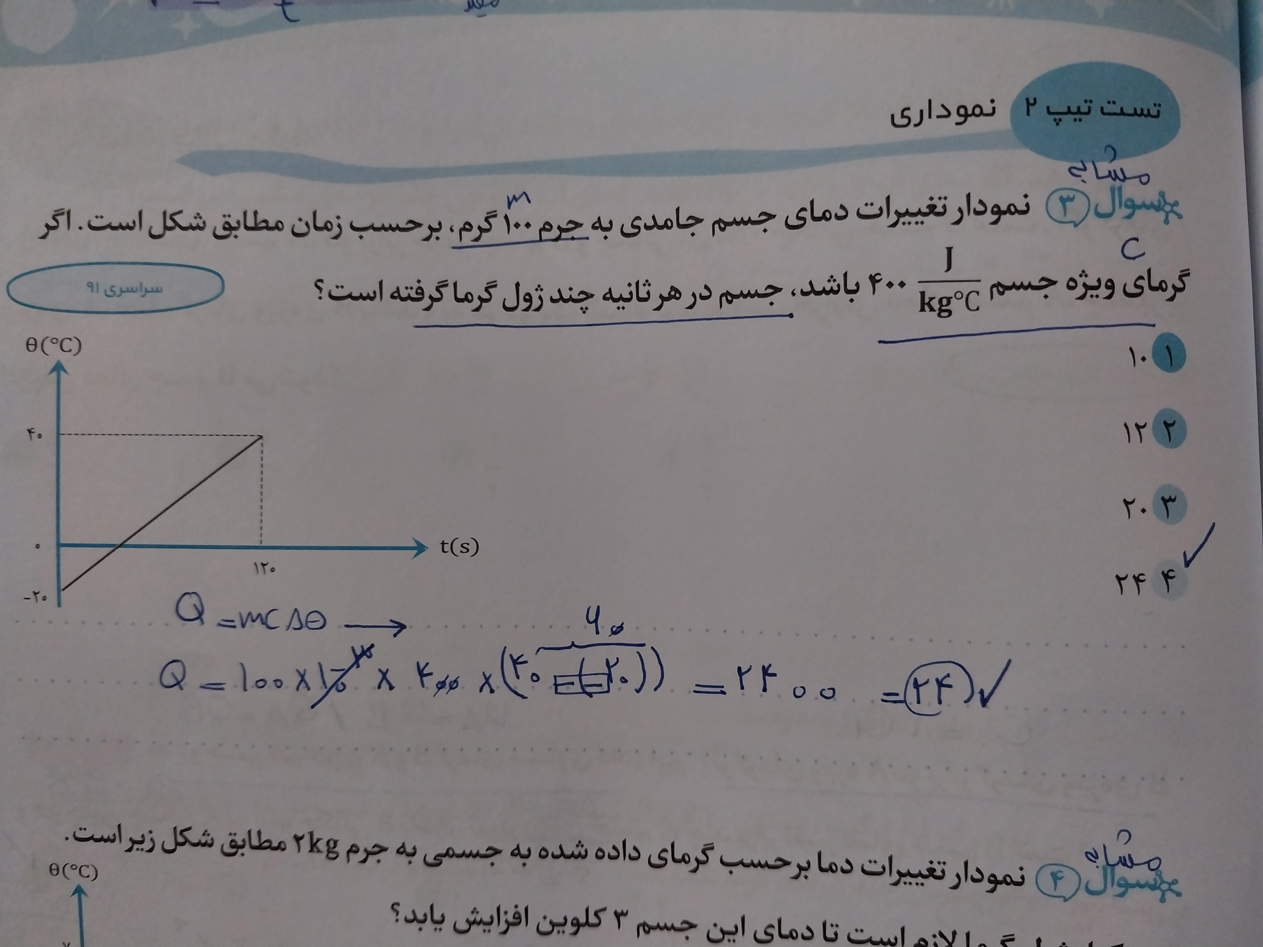 سلام دوست عزیز>< مقدار 2400 ژول درسته. ولی باید درنظر داشته باشی که این توی 120 ثانیه هستش. یعنی در هر ثانیه 20 ژول منتقل شده.
