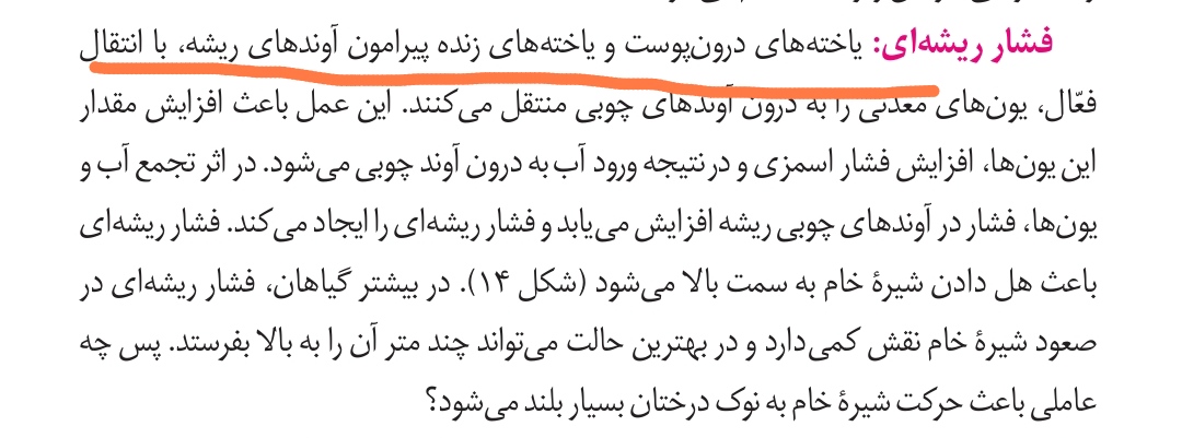 گزینه ۴ میشه قسمت اول رو توضیح بدید گفته برای تعیین سرعت و ترکیب شیره‌ای که باعث جابجایی اون میشه یعنی انگار داره میگه شیره خام باعث جابه جایی فشار ریشه‌ای میشه به نظرتون بر عکس نگفته آخه فشار ریشه ای هست که با باعث جابه جایی شیره خام میشه نه شیره خام باعث جابه جایی فشار ریشه‌ای انگار یکم جمله عجیبه😂