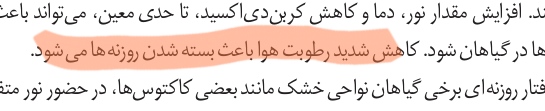 در مورد اون موضوع هم متن کتاب و چک کردم گفته کاهش شدید رطوبت باعث بسته شدن روزنه ها میشه