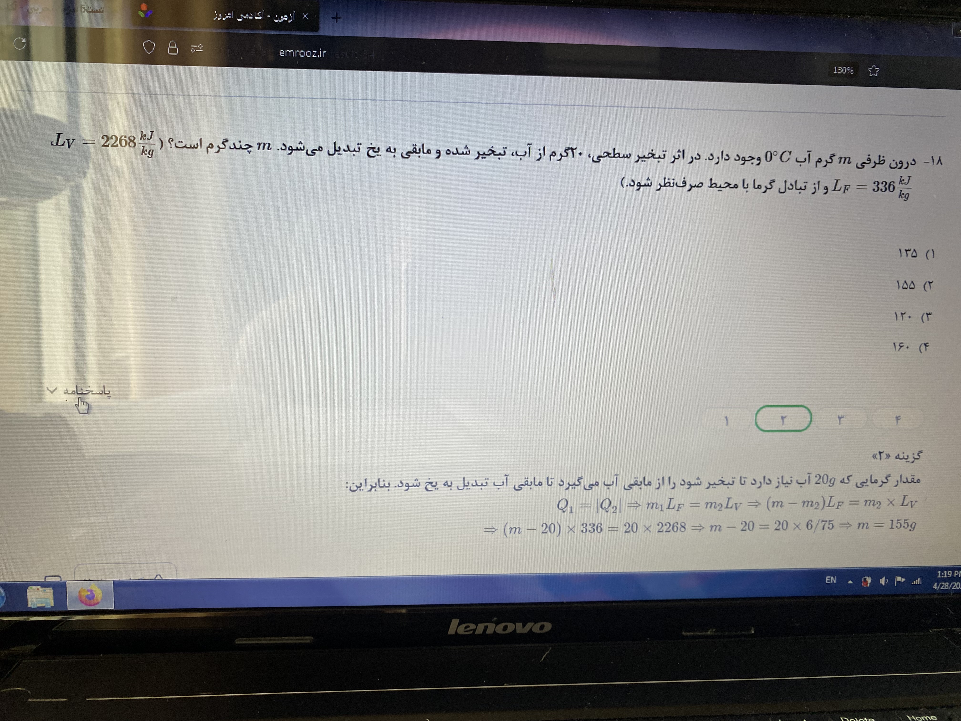 @فاطمه رحیمی نسب سلام خسته نباشید:) یعنی صرفا از اونجایی که سوال گفته یخ بزرگه نتیجه گرفتیم که دمای تعادل صفر درجه هست؟!