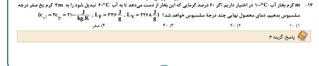 @نرگس مهدوی جرم یخ مورد نیاز برای اینکه 200 گرم اب یخ بزنه را بدست میاریم در نهایت!