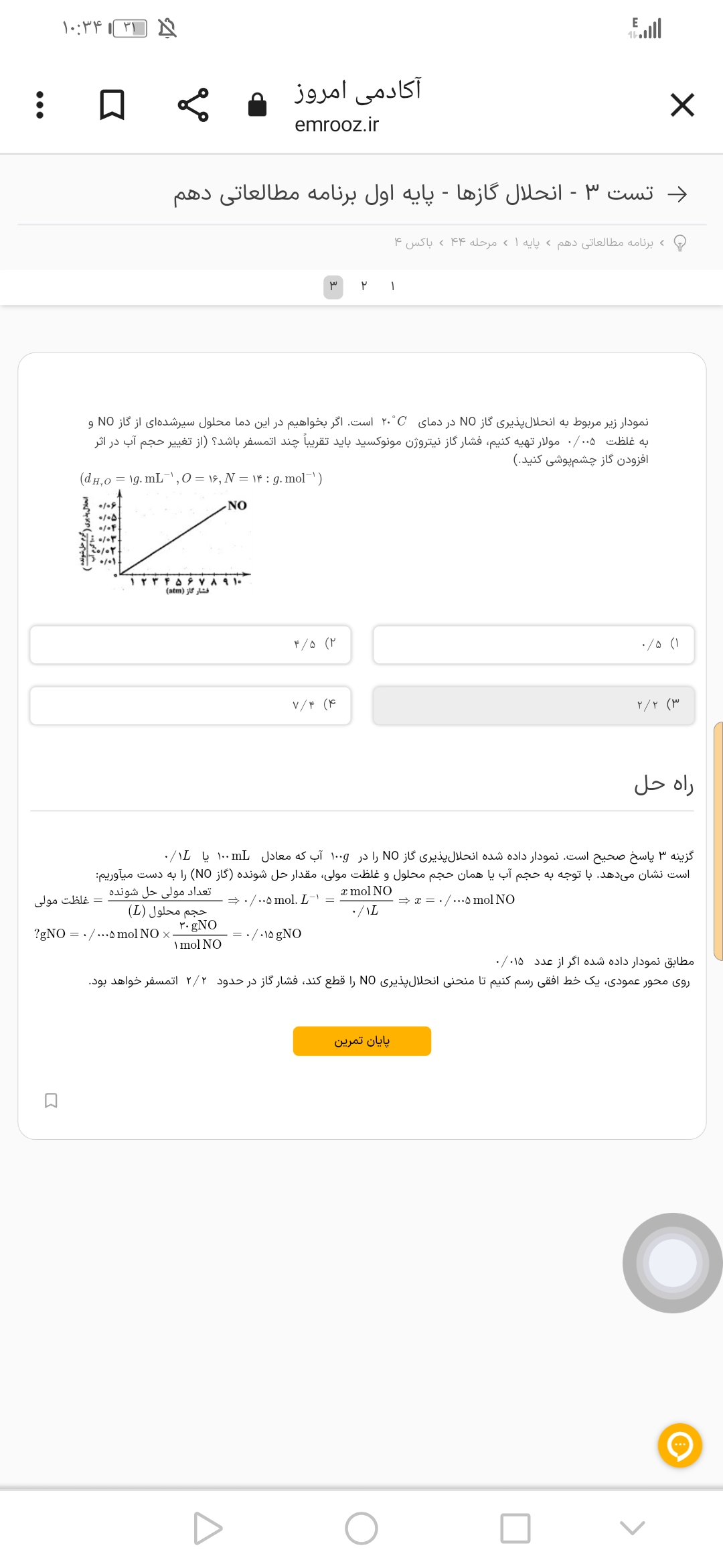سلام میشه این سوال رو با سوال سوم تمرین یادبگیریم مقایسه کنید چرا درسوال سوم تمرین یادبگیریم برای پیدا کردن مول از راه مولار میره ولی تو این تست تعداد مول رو همون یک صدم در نظر میگیرد