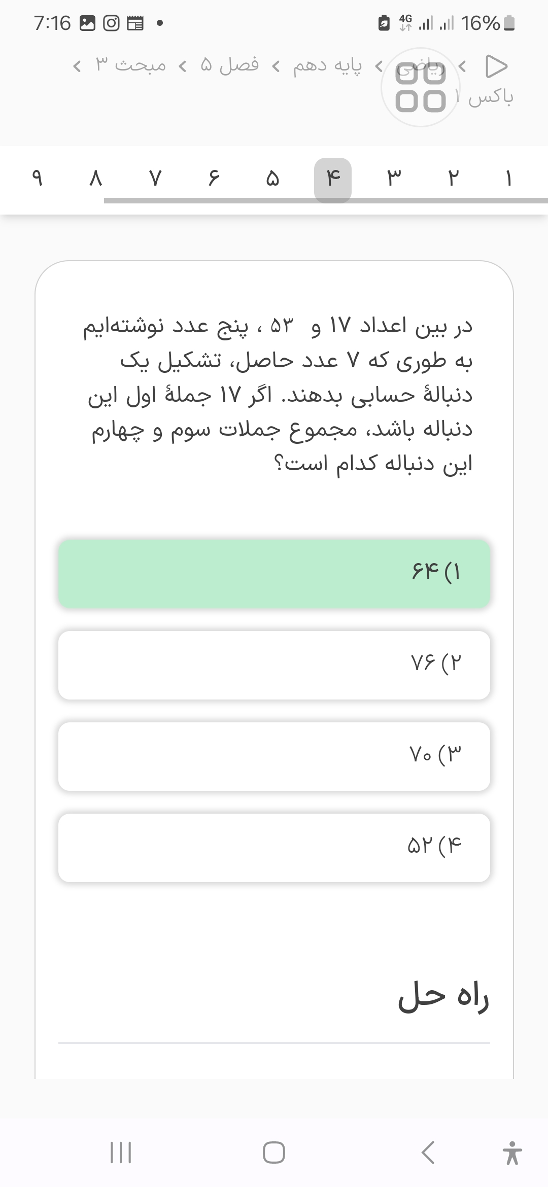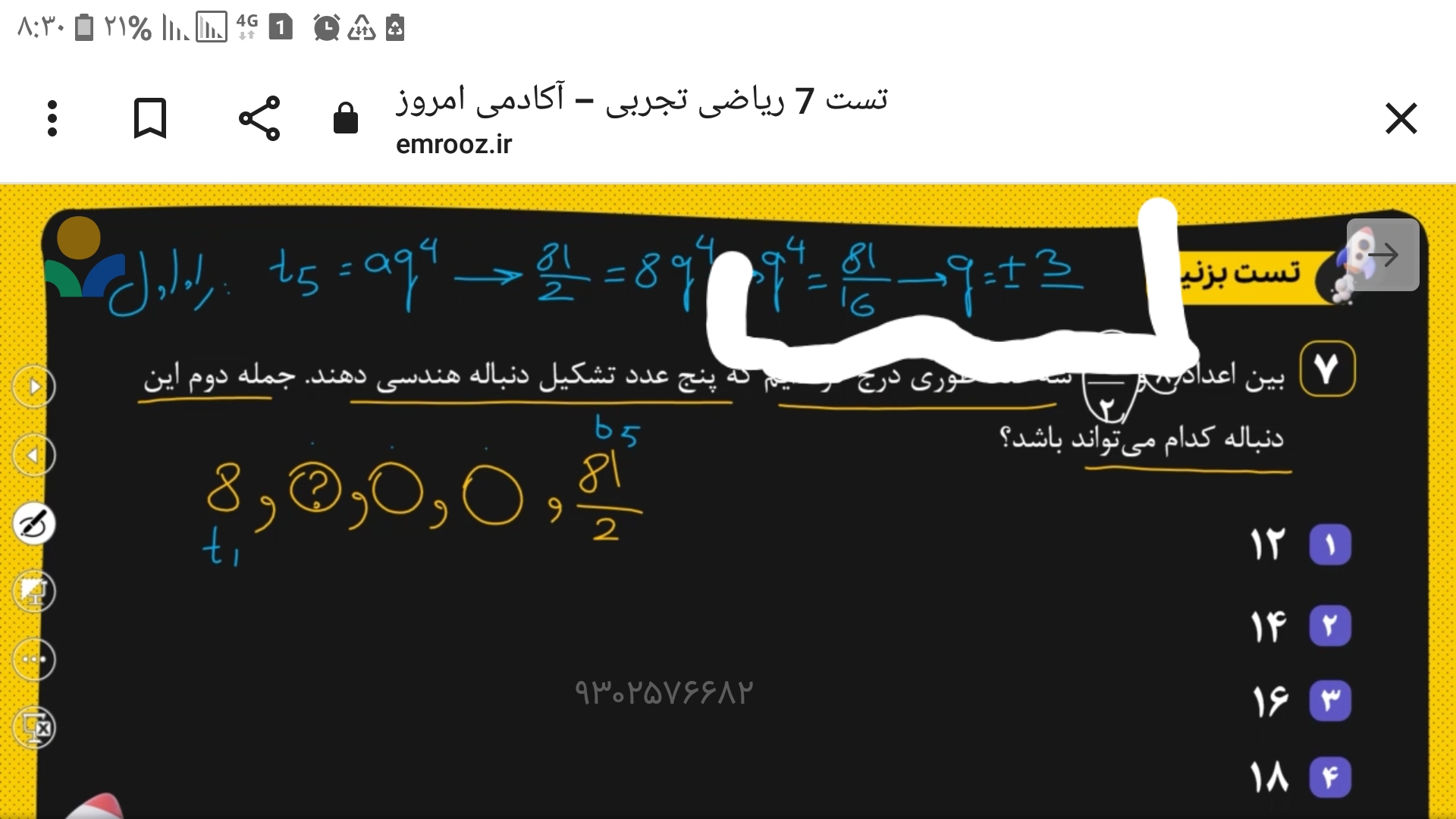 ببین جمله اول و پنجم رو داریم با داشتن این ها میتونی قدر نسبت دنباله رو پیدا کنی و به راحتی دنباله حل میشه