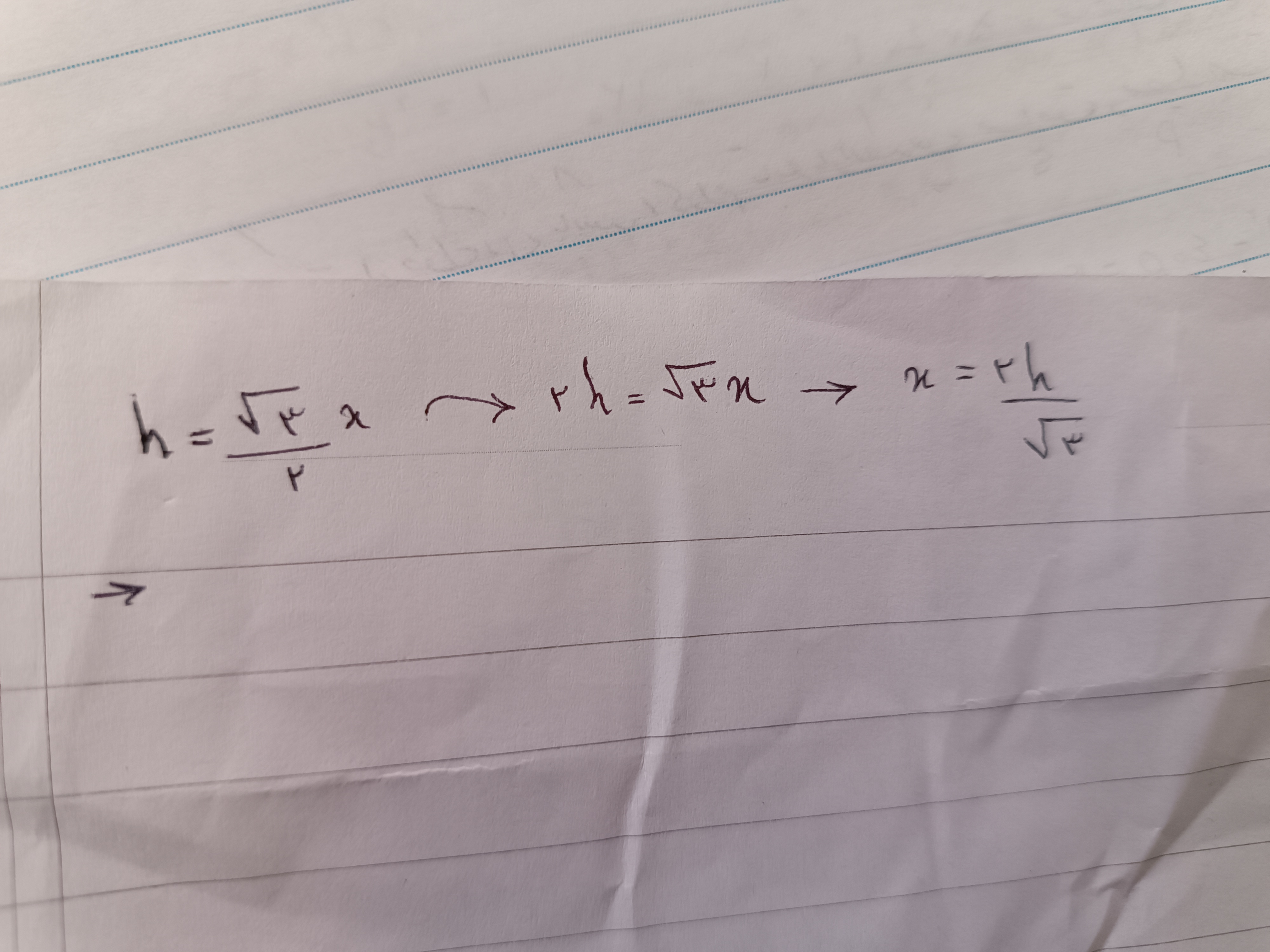 اون بخشی که h بر حسب x بود چطوری برعکسش کردن و x بر حسب h شد؟؟