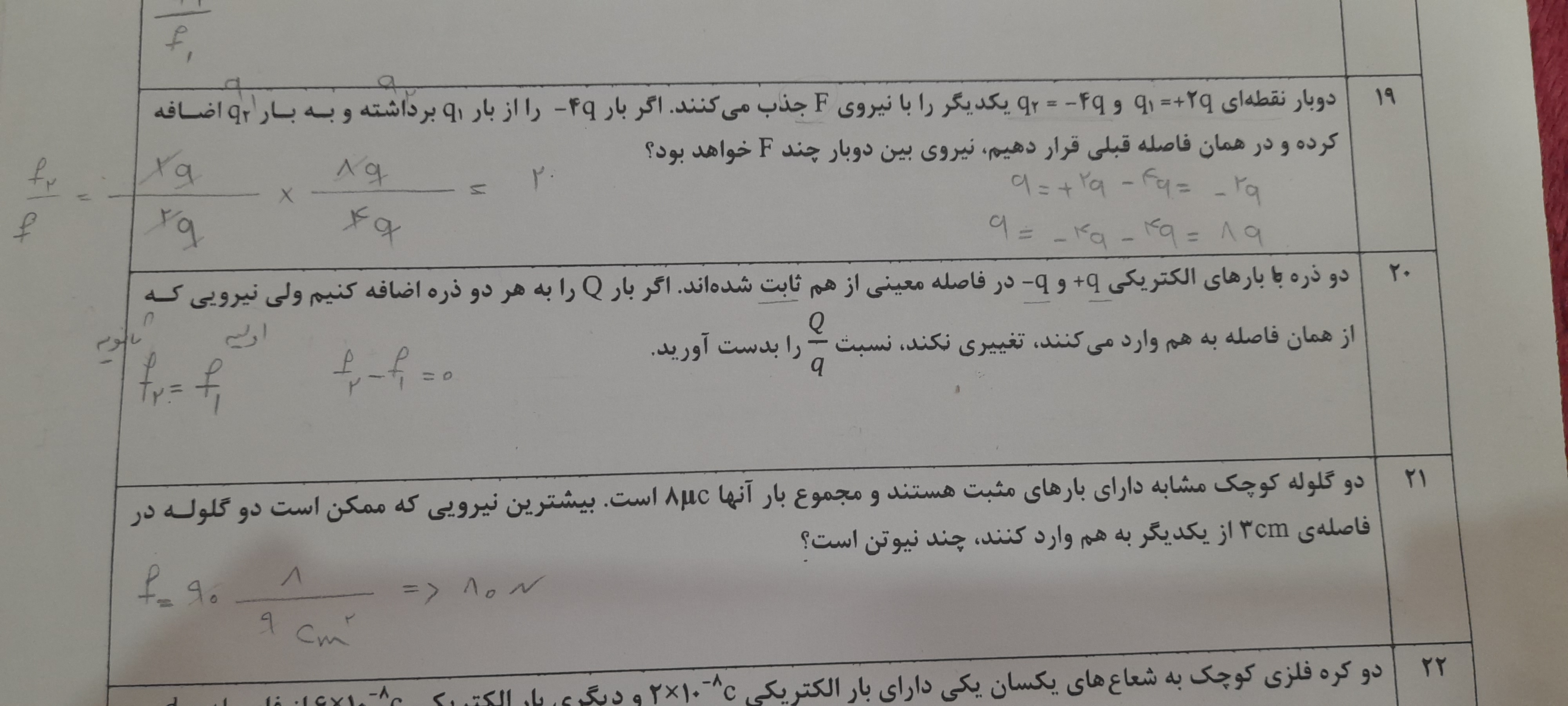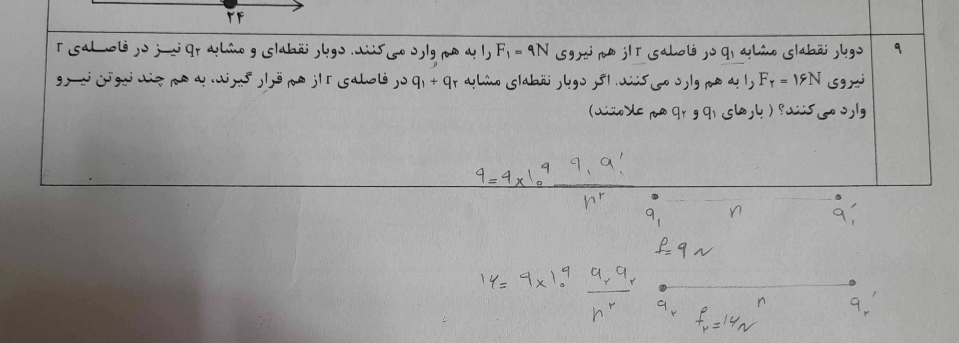 سلام تو نیرو وقتی سوالی به ما بگه مثلا نیرو روی کیو سه صفر باشه و بجای دو تا نیروی الکتریکی کنارش سه تا نیرو الکتریکی باشه باید چجور حل کنیم