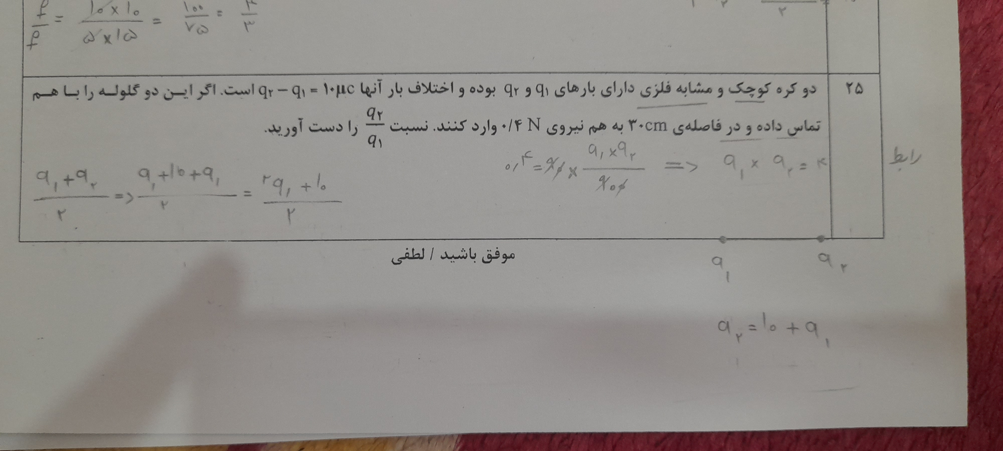 سلام درسته جوابتون فقط نکته ای که حائز اهمیته اینه که شاید توی بعضی از سوالا q1 وq2 دوبار متفاوت باشن به خاطر این نمی تونیم در ضرب داخلی صورت بنویسیم q به توان 2 البته بو این سوال مقدار هر بار رو نگفته و میشه q به توان 2 در نظر گرفت ولی به طور کل جوابتون درسته