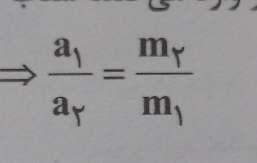 سلام تفسیرش اینه که شتاب یا جرم رابطه عکس داره مثلا تو سوالاتی که شتاب ها رو داده و نسبت جرم ها رو بخاد یا جرم ها رو داشتی و یه شتاب مجهول باشه میتونی ازش استفاده کنی