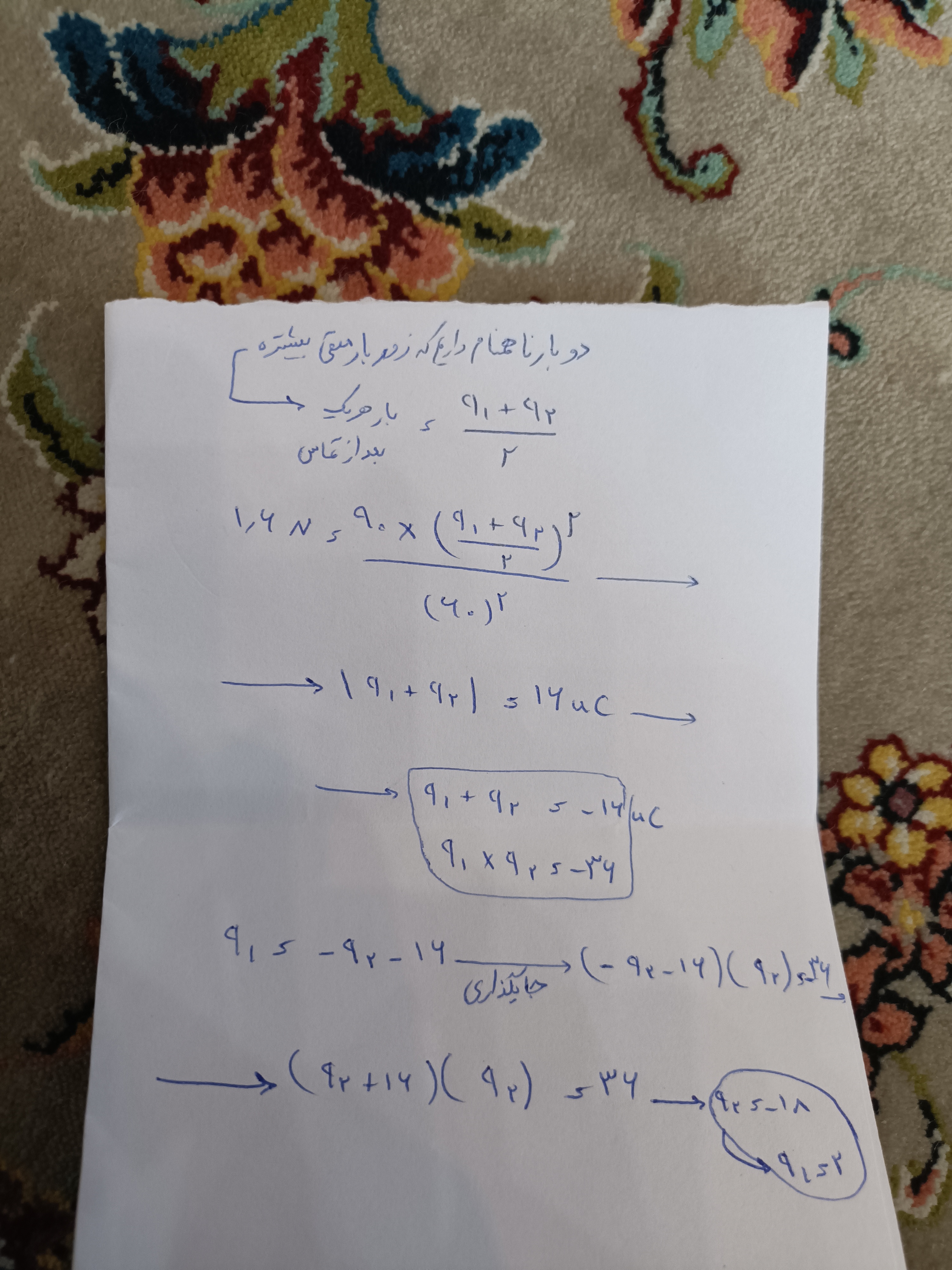 به عنوان راه حل من از این روش رفتم که دوتا عدد ۱۸ و منفی ۲ دراومد که اگر منظورش اندازه باشه میشه ۲ میکروکولن که در گزینه ۲ وجود داره