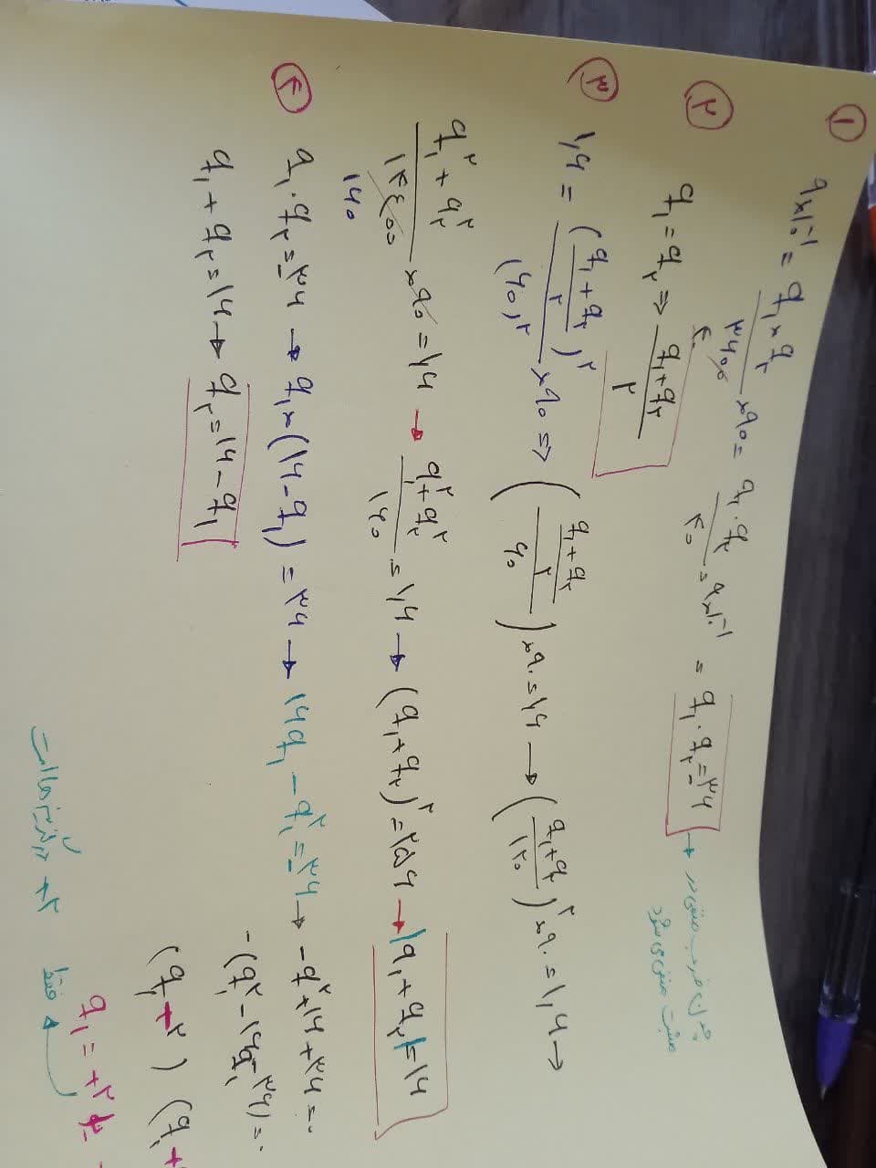 گزینه 3 و 4 رو میتونیم با استفاده از همون اطلاعات خوبی که اول سوال بدست اوردیم حذف کنیم. چون اگه q یک رو 10 بگیریم q دو منفی3/6 بدست میاد و اگه q یک رو 20 در نظر بگیریم q دو منفی 1/8 بدست میاد. پس فقط گزینه یک و دو میمونن که بنظرم امتحان کردنشون راحته.