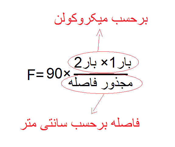 سلام.وقتی فاصله سانتی متر باشه و بارها بر حسب میکروکولن باشه ما از 90 استفاده میکنیم و فاصله رو برحسب سانتی متر و بار هم بر حسب میکروکولن در فرمول قرار میدیم. خب وقتی باری که توی فرمول قرار دادیم برحسب میکرو کولنه، دوباره بیایم ضرب در منفی6 کنیم که برحسب میکروکولن بدست بیاد؟!
