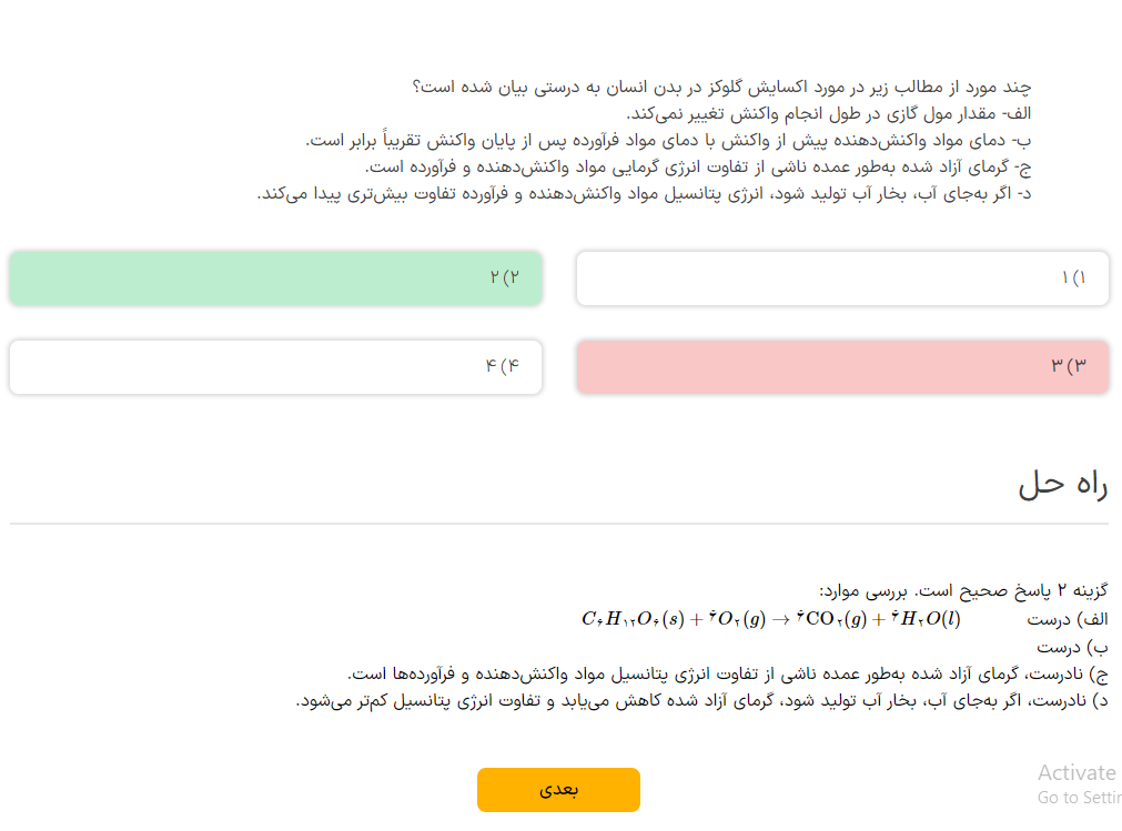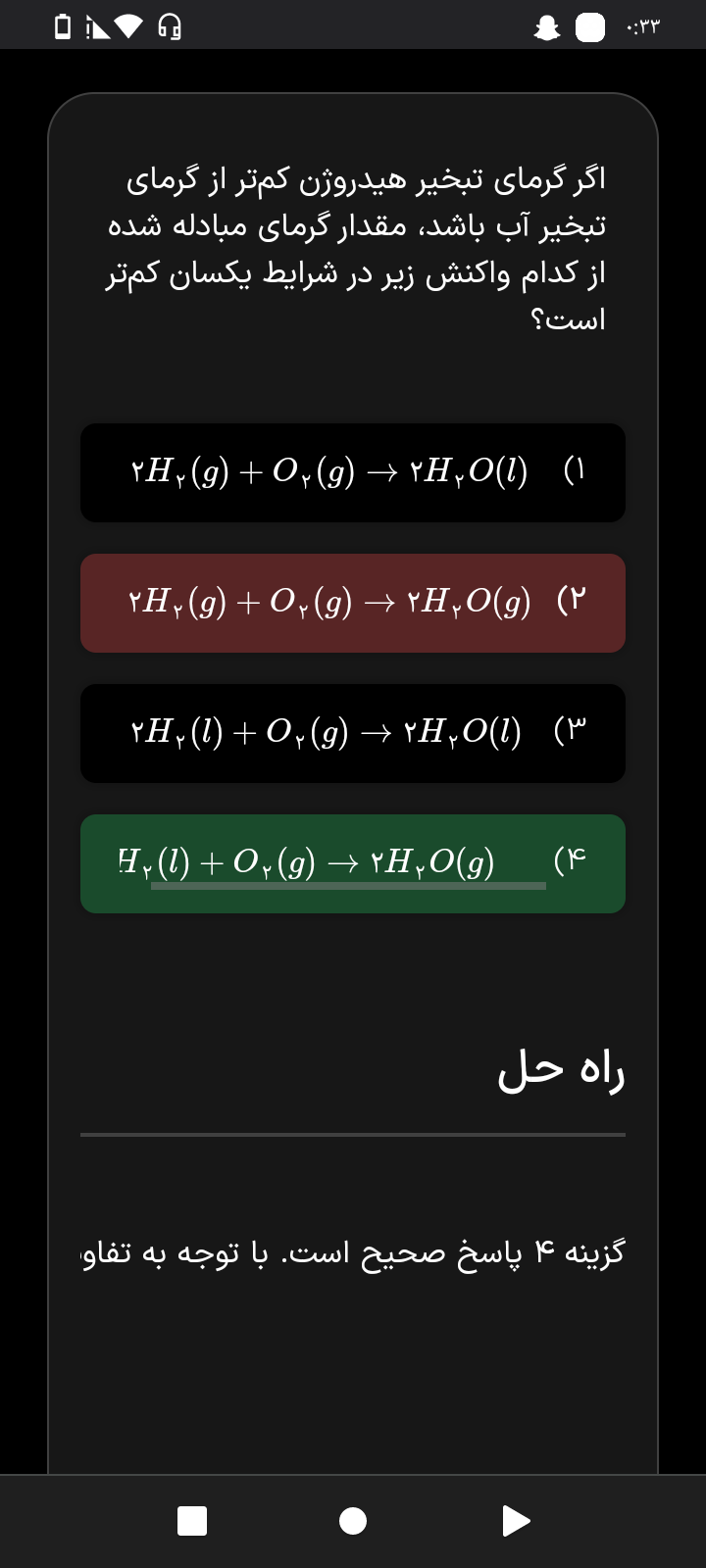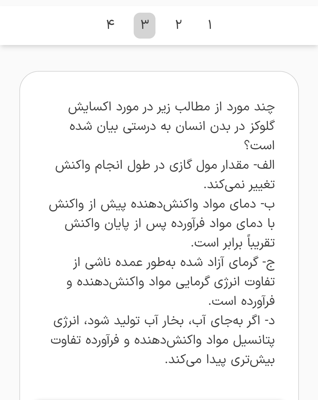 سلام وقت بخیر ببخشید این واکنش گرمتده هست پس زمانی که بخار اب باشه یعنی حالت گازی هست پس سطح بالاتری داره تا به واکنش دهنده برسد چرا گزینه د غلط گرفته شده ؟