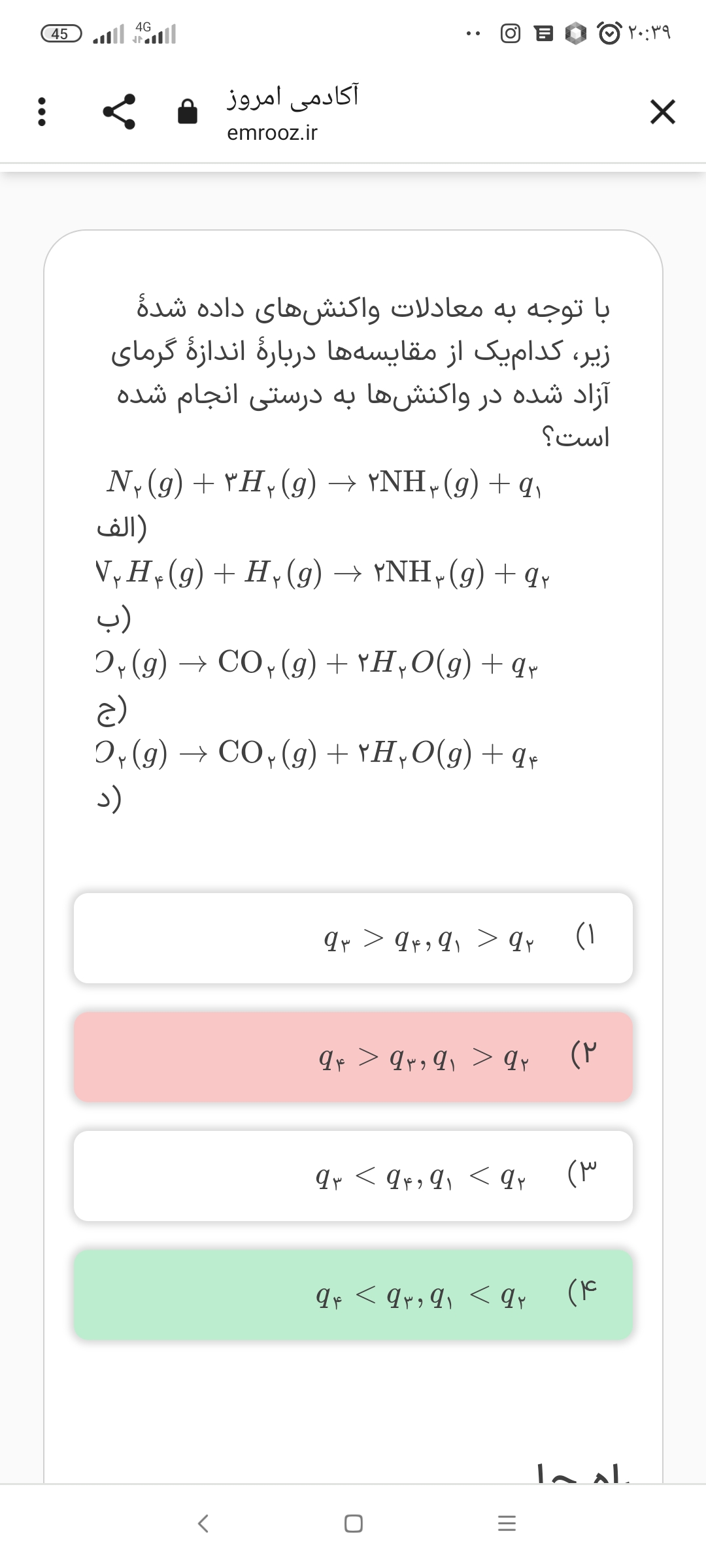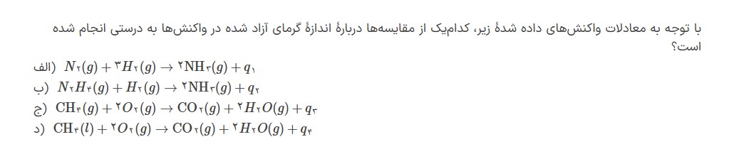 سلام اینجا تو این سوال از کجا بفهمیم واکنش ها گرماده هستند یا گرماگیر؟