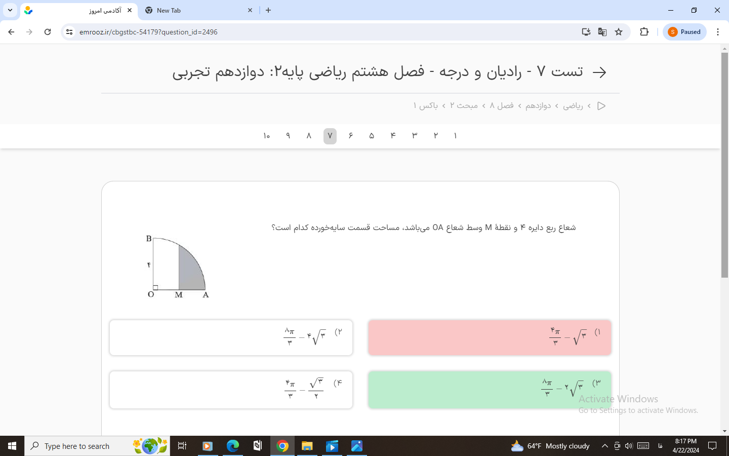 سلام من اینطوری به این سوال جواب دادم درسته؟